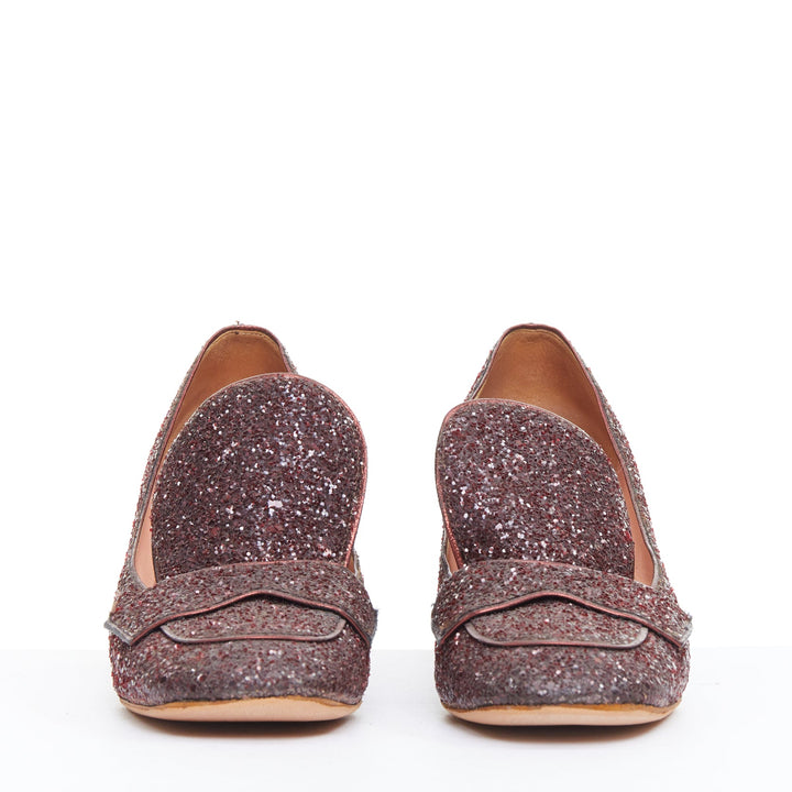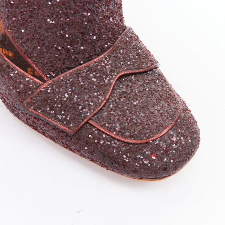 ROCHAS burgundy glitter brown scaled leather sculpted heel loafers EU36