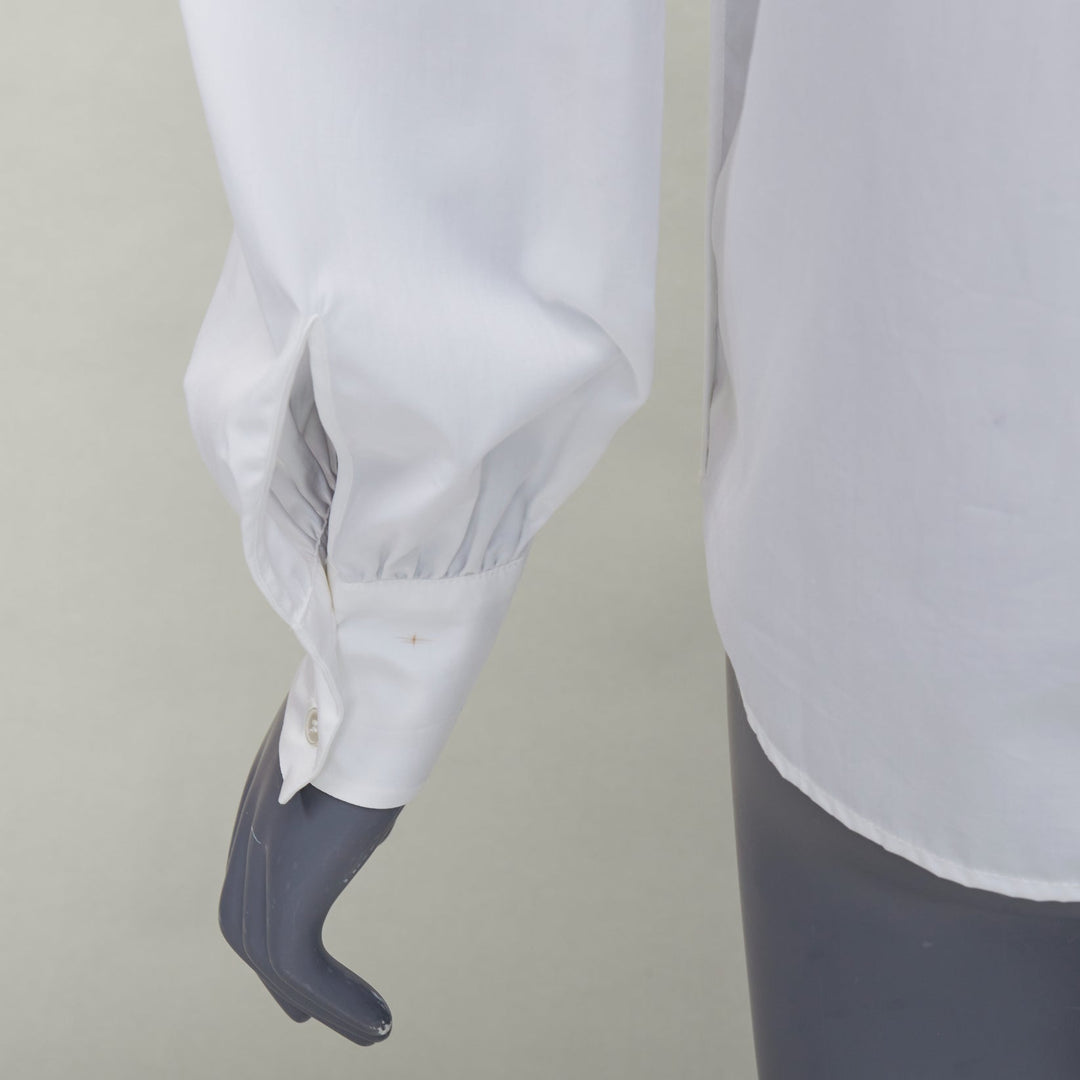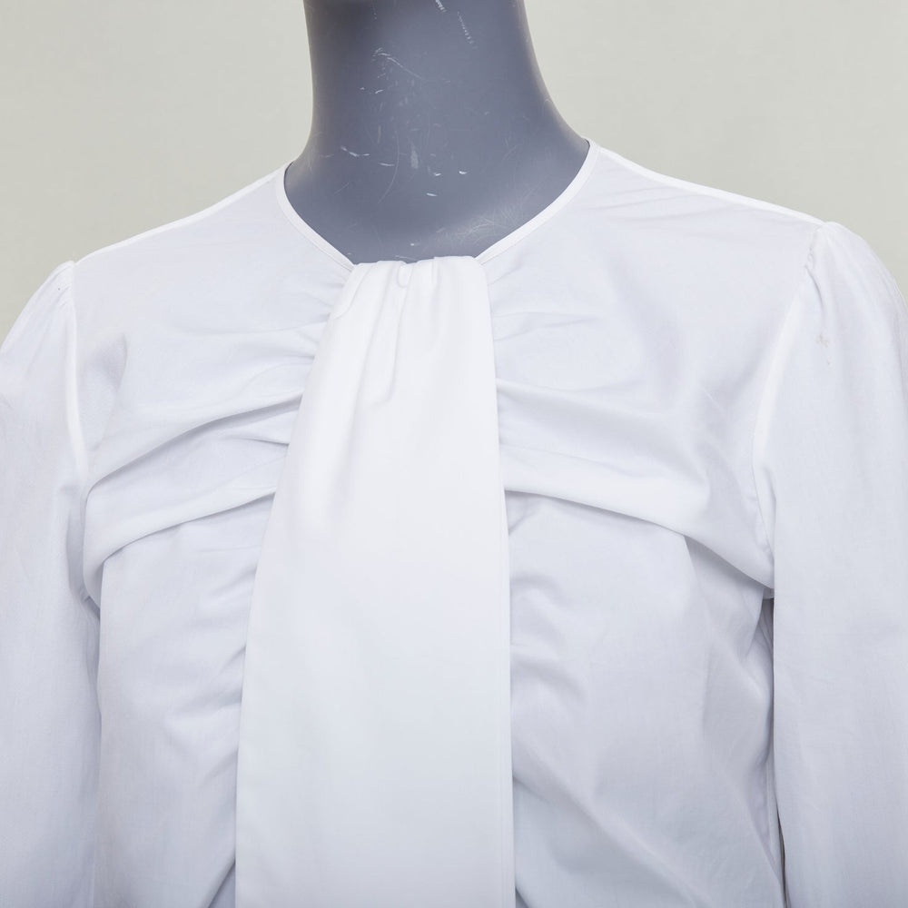 ROCHAS cream bow neck ruched front puff sleeve crew blouse IT38 XS