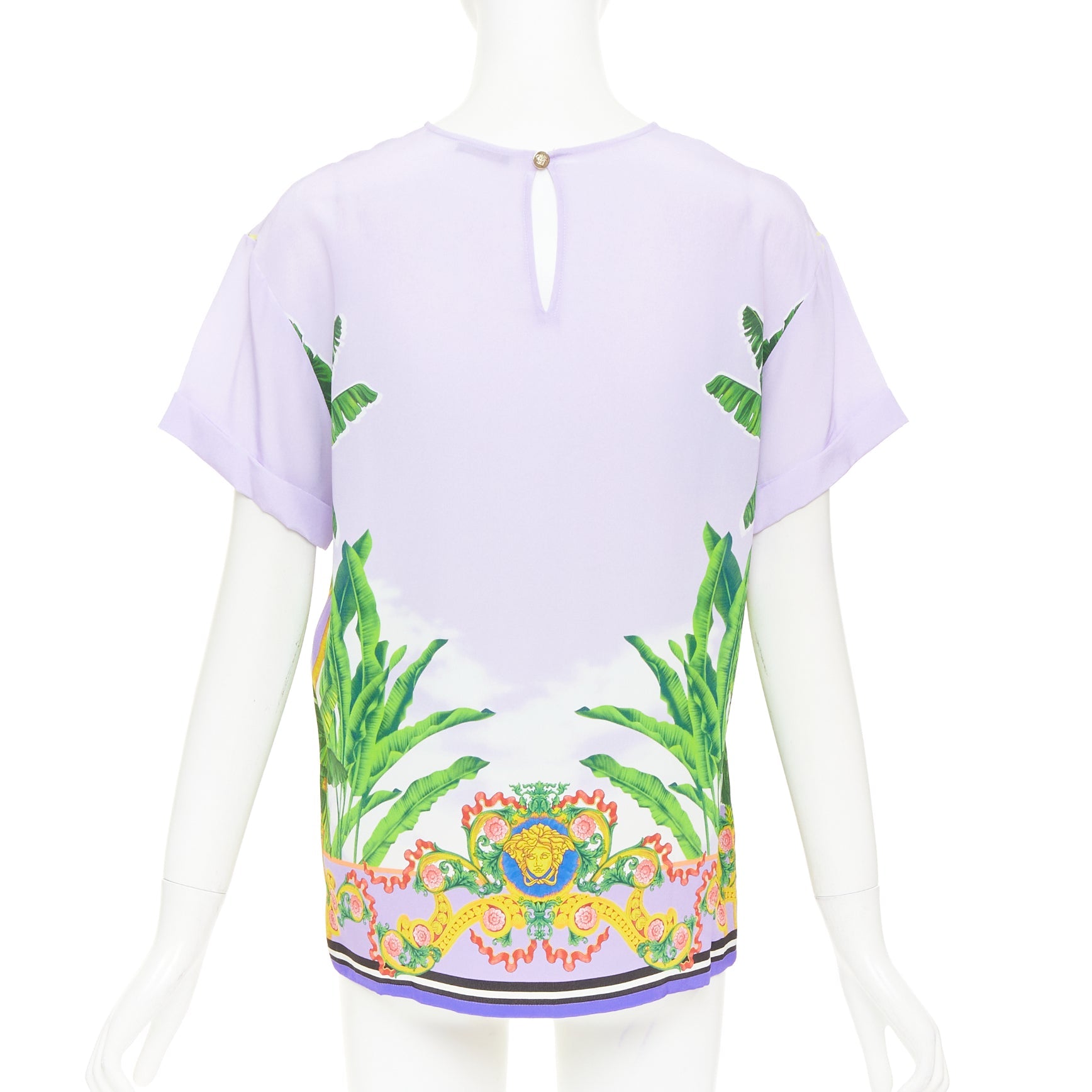VERSACE Beverly Palm lilac purple silk print short sleeve top IT40 S