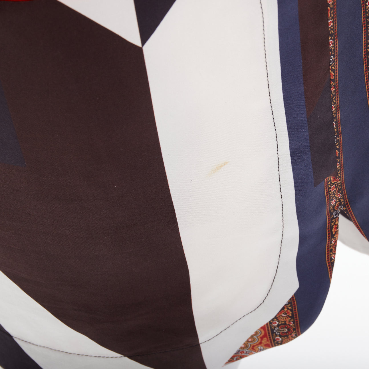 Extra Details: Paisley printed silk offsets wool blend vest bodice.