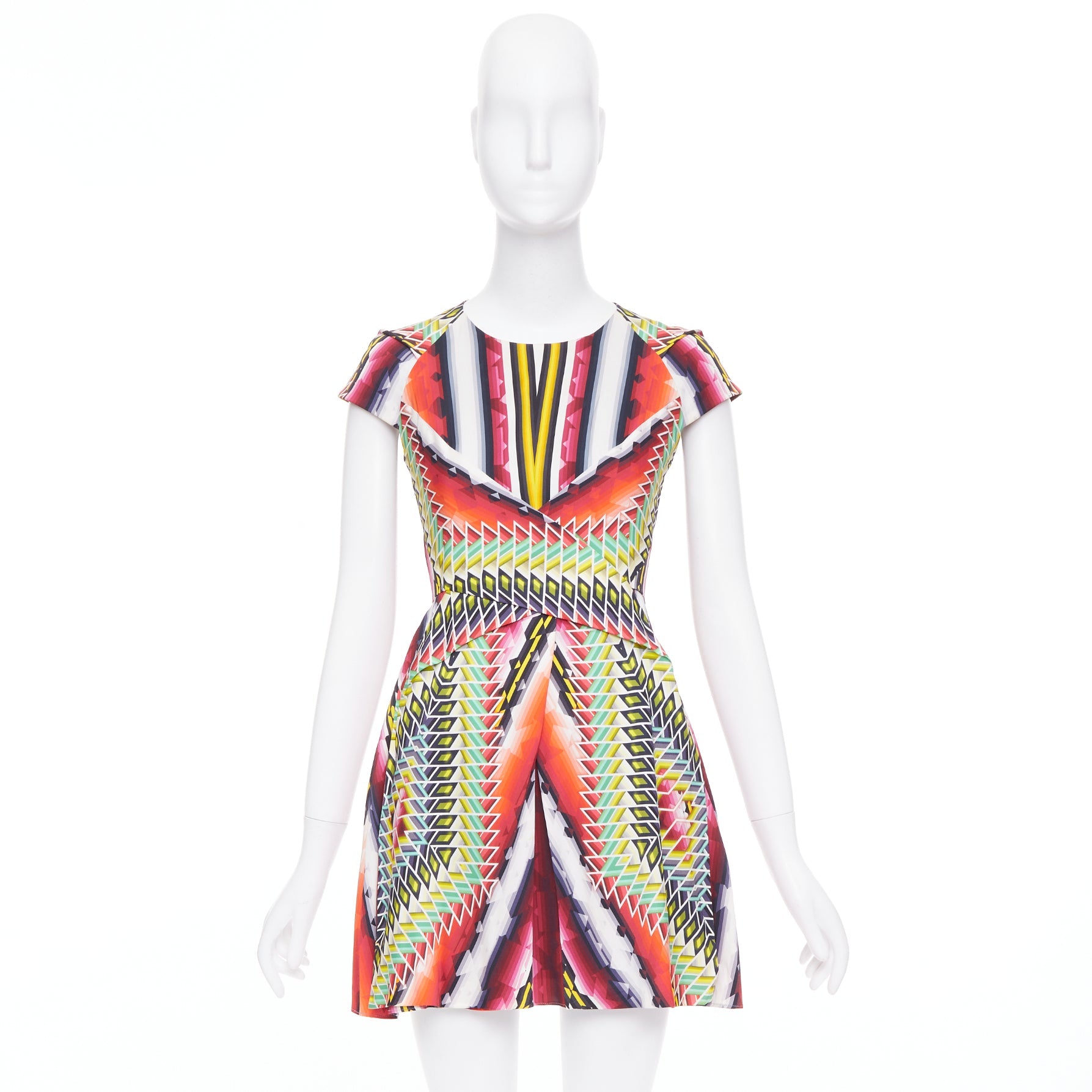 PETER PILOTTO Runway multicolor silk blend geometric digital print dress UK8 S