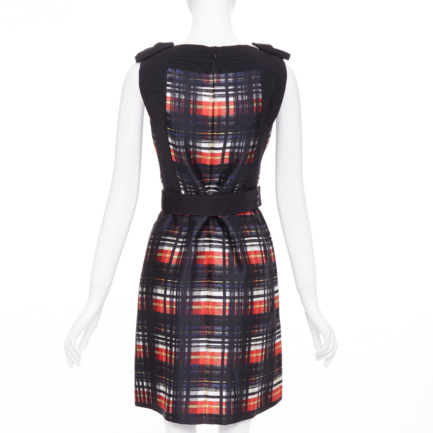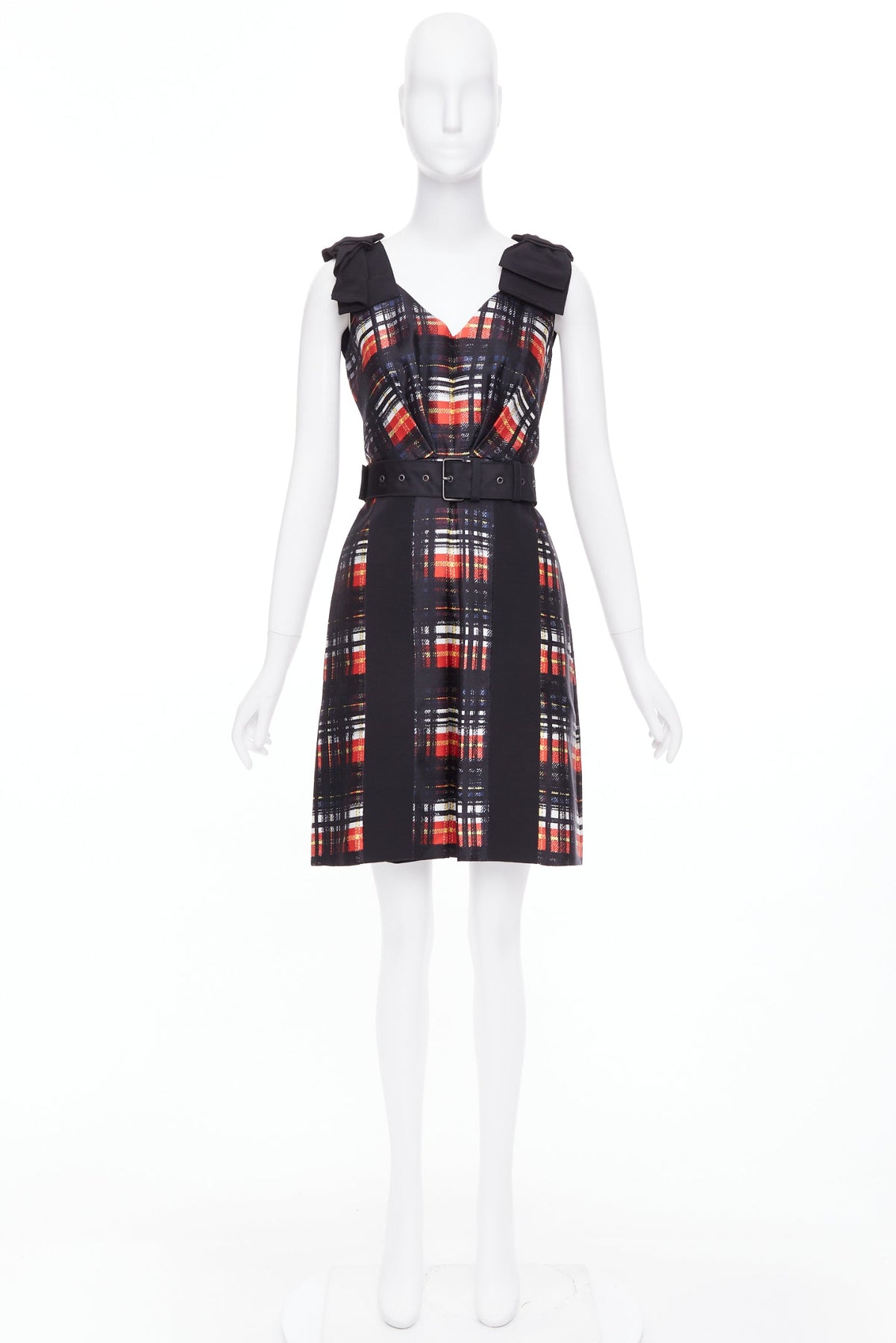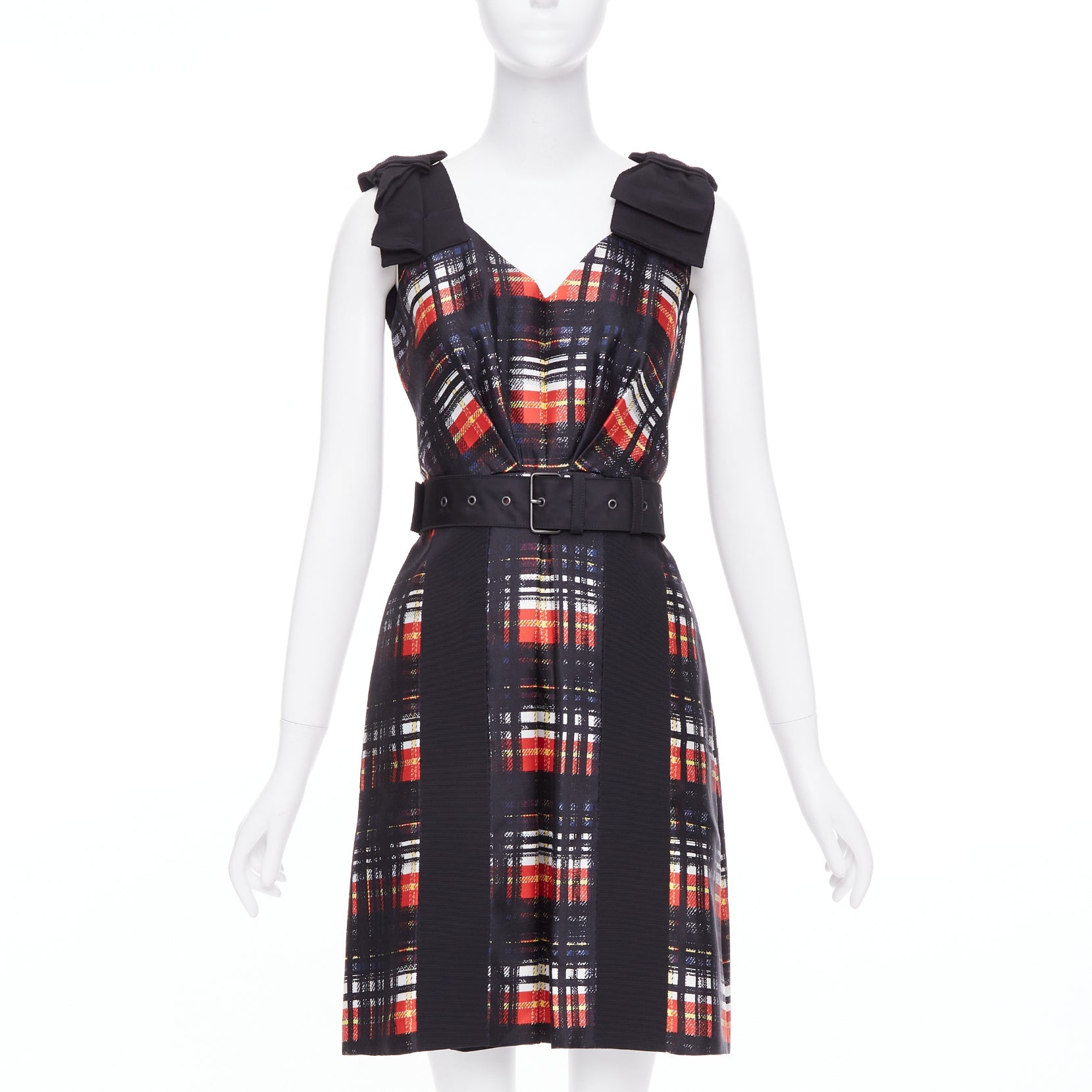 PRADA 2015 Runway Vampire black red wool silk bow shoulder belted dress IT38 XS