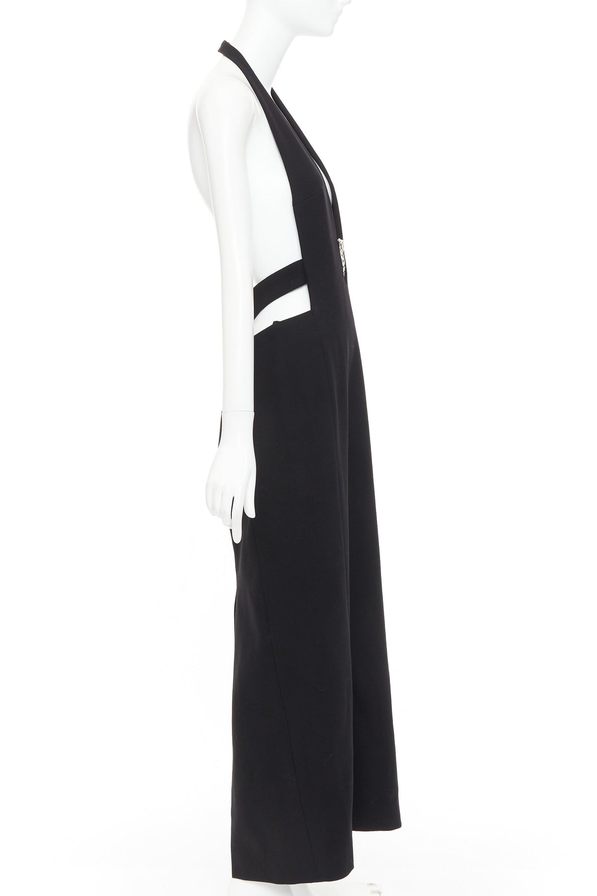 SAINT LAURENT 2022 Runway black plunge neck crystal brooch low back wool dress FR40 L