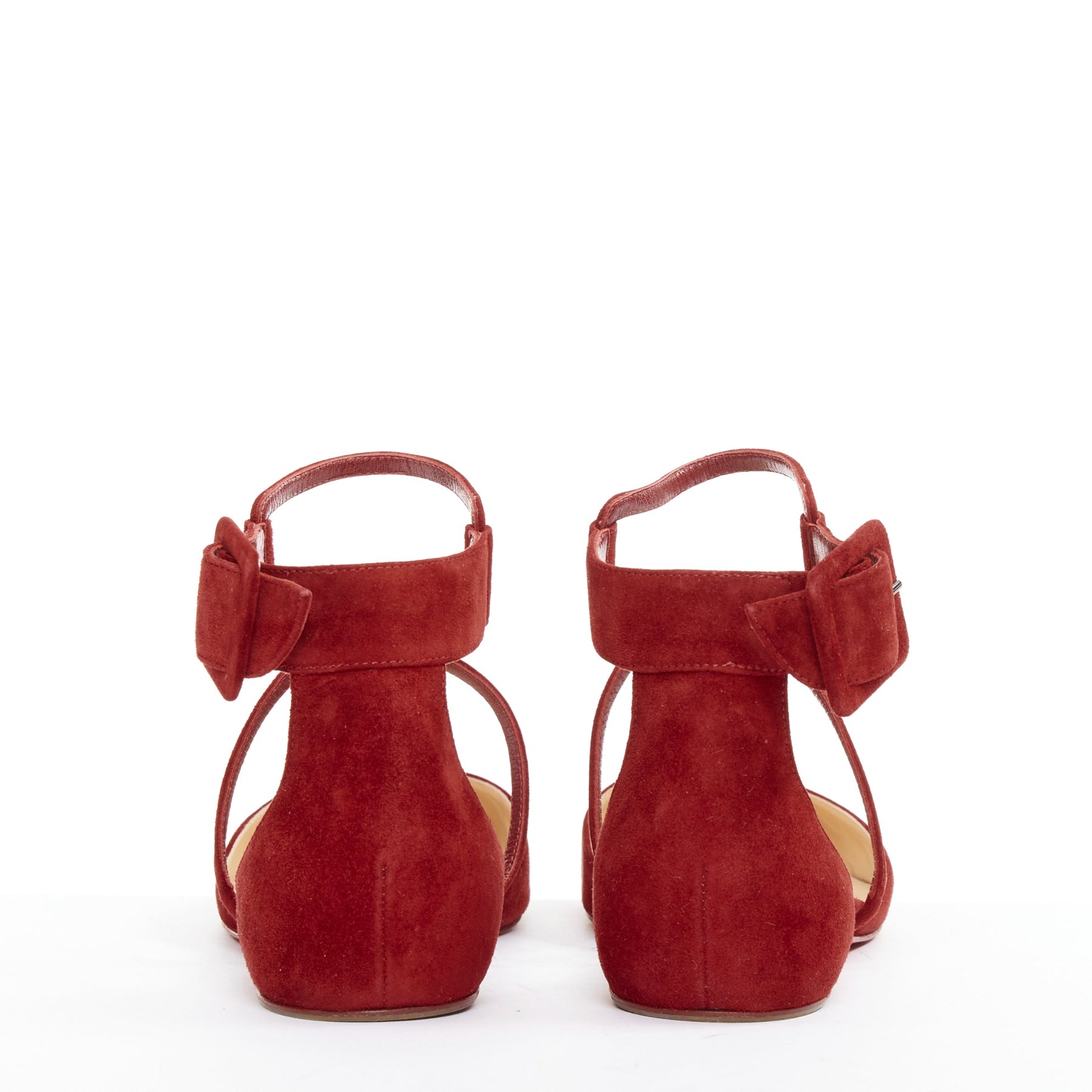 CHRISTIAN LOUBOUTIN Suzanna Flat Veau Velours Carmin red suede criss cross strap pointy flats EU37.5