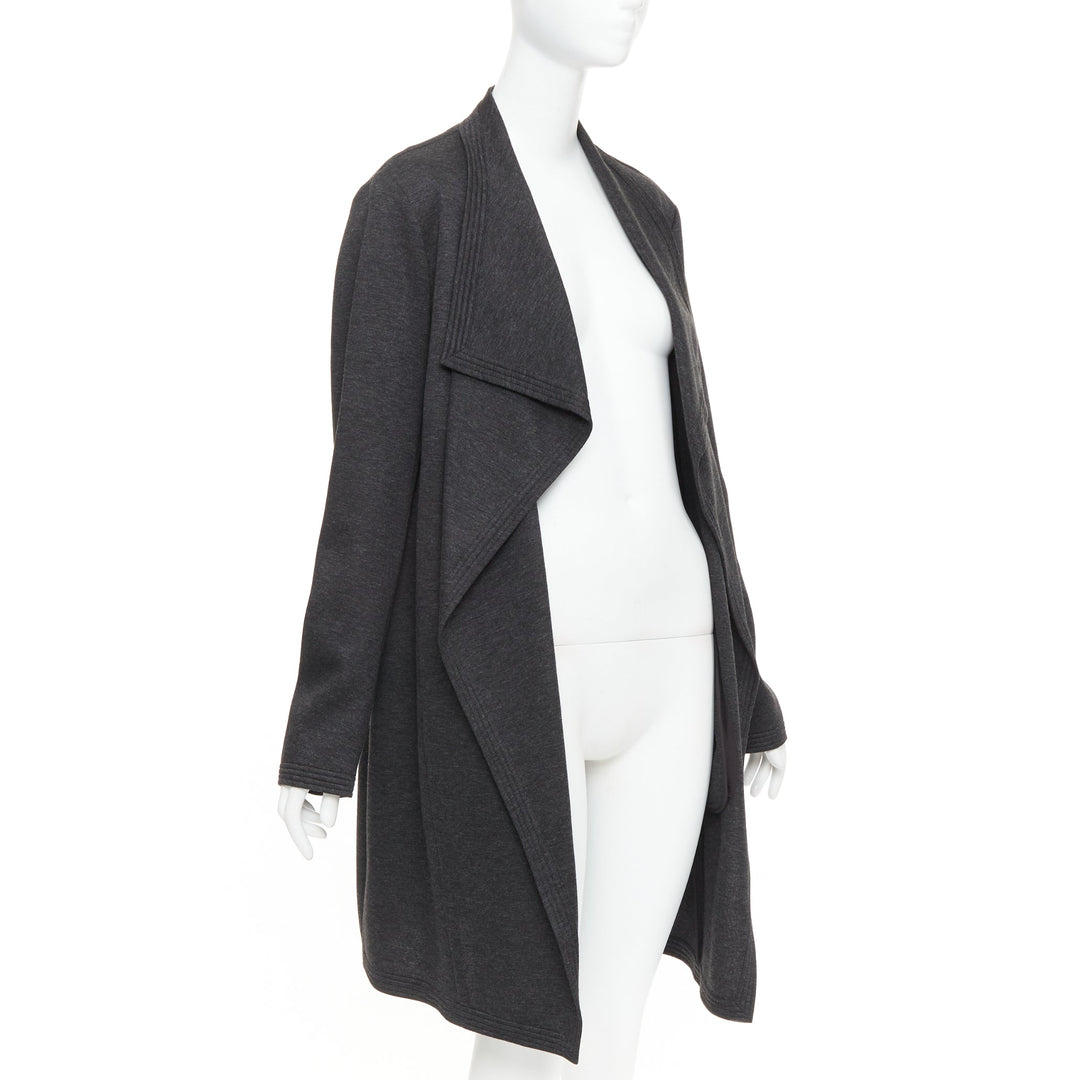 DONNA KARAN dark grey viscose quilted waterfall drape front coat US14 XXL
