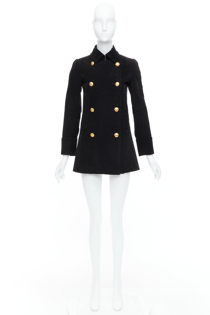 ALEXANDER MCQUEEN MCQ black cotton gold buttons double breast coat IT36 XXS