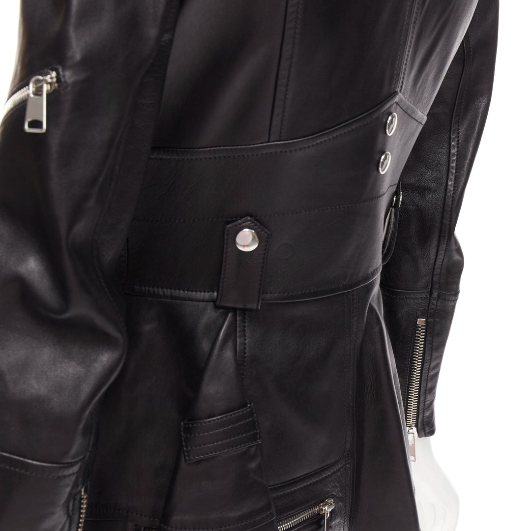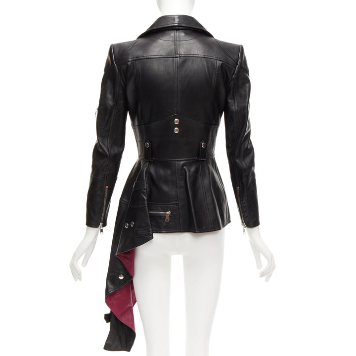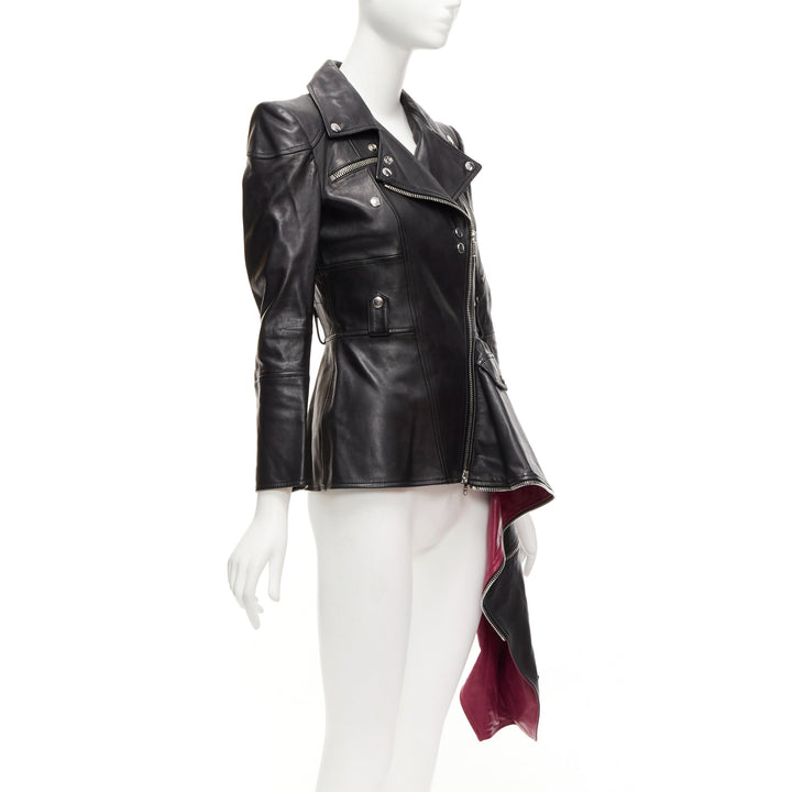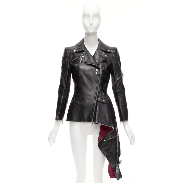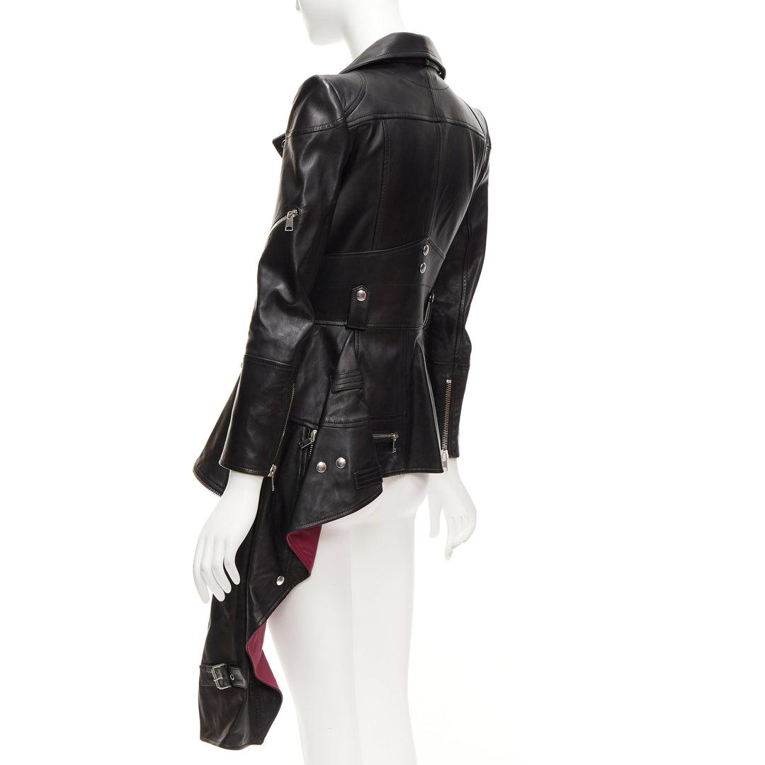 ALEXANDER MCQUEEN Runway black leather zip asymmetric hem biker jacket IT38 XS