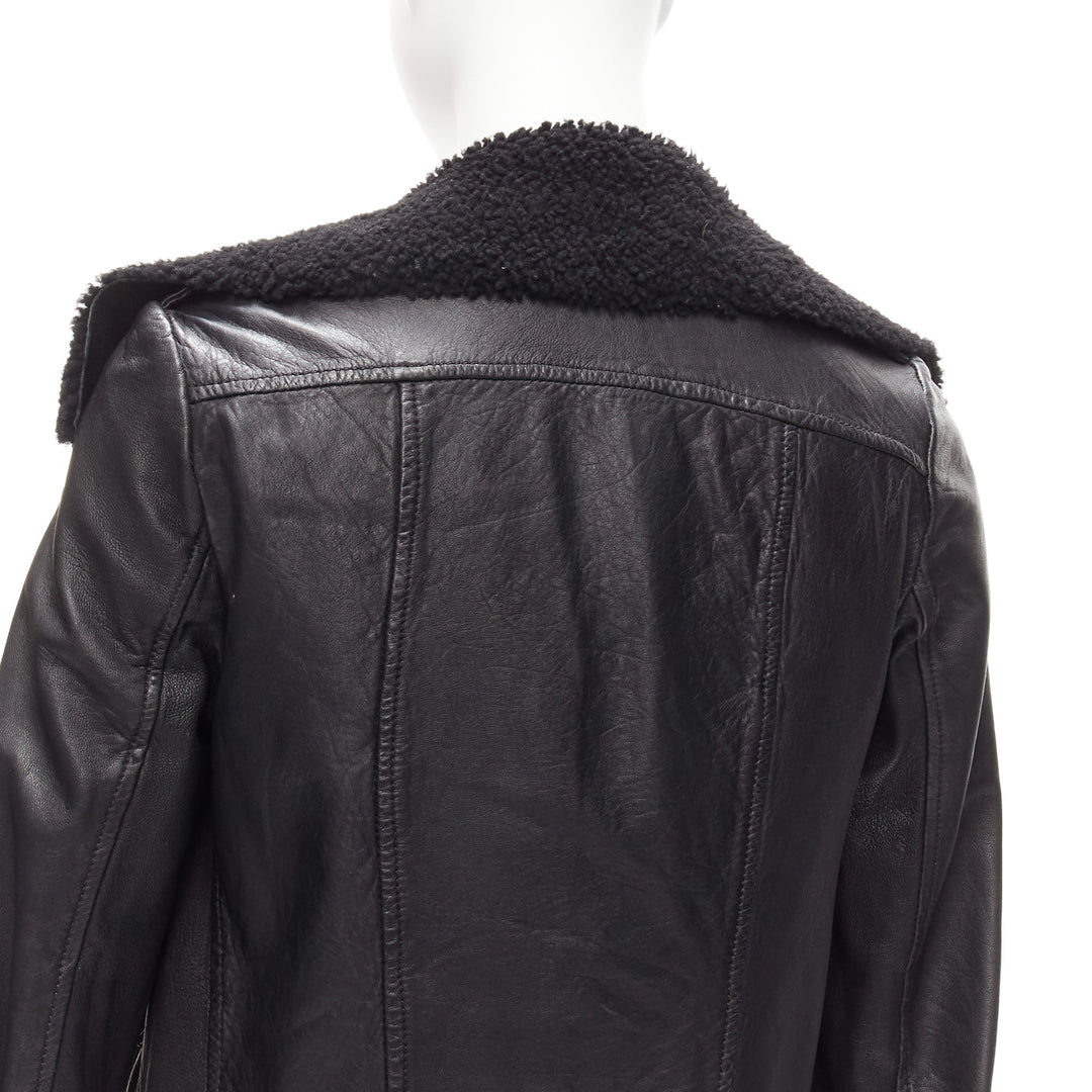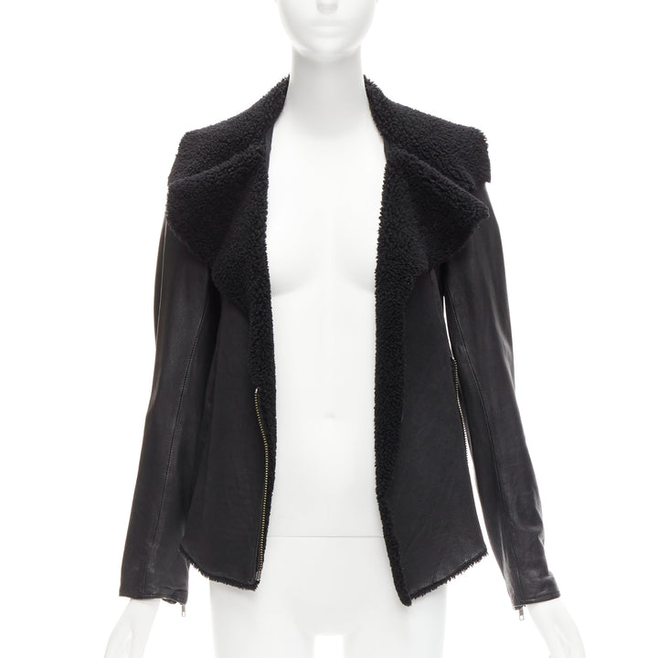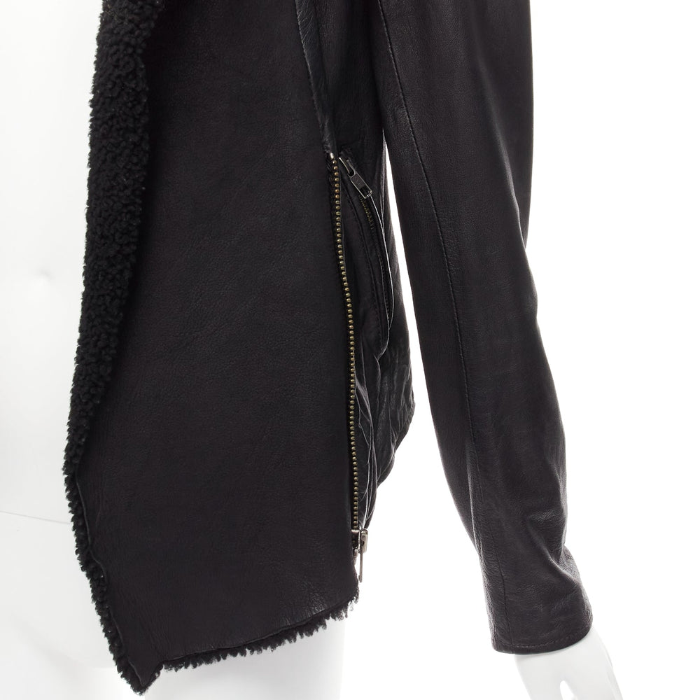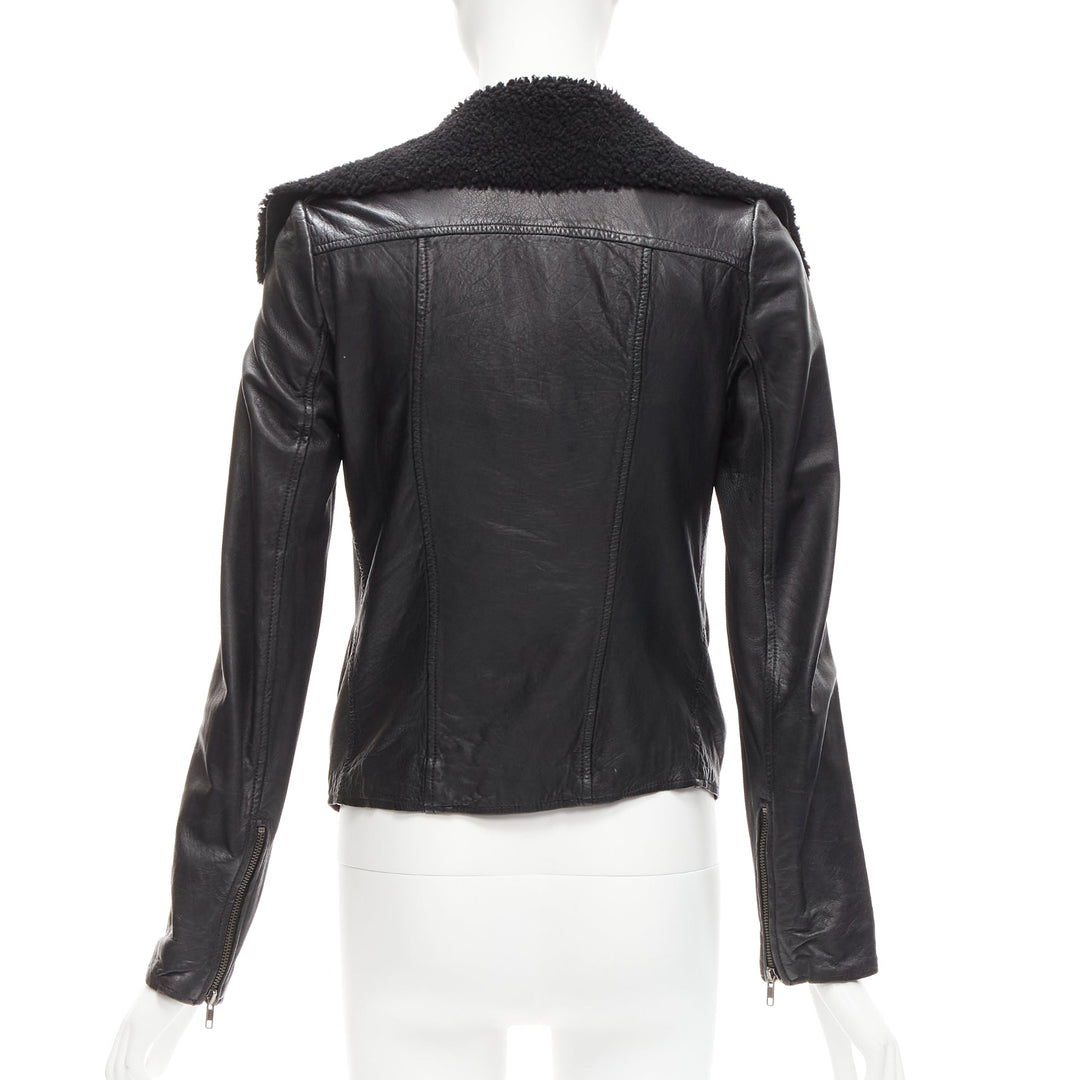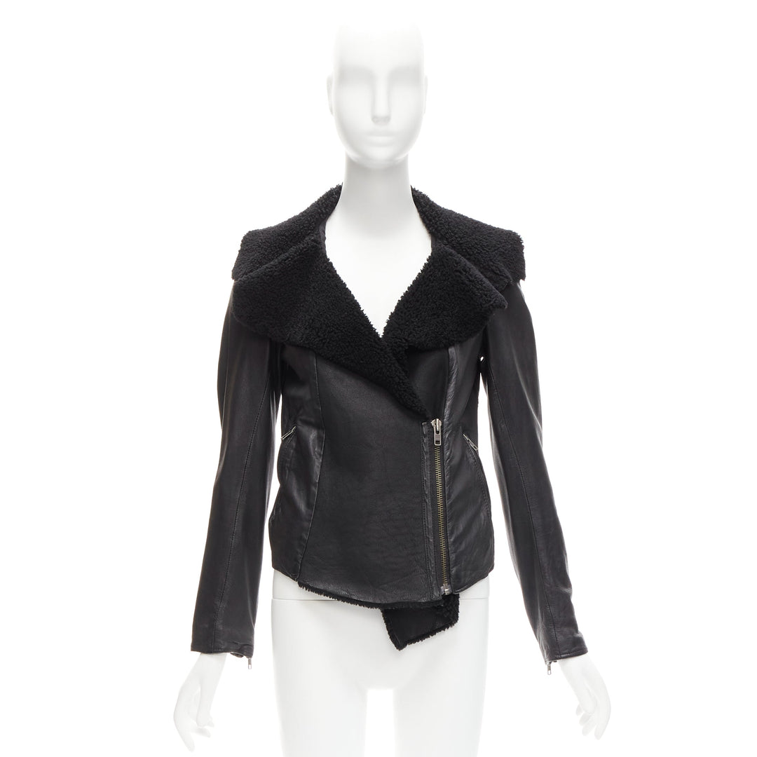 ALL SAINTS Nene black sheepskin leather shearling lined biker jacket UK8 S