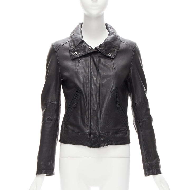 ATSURO TAYAMA black sheepskin leather 2 way collar biker jacket US4 S