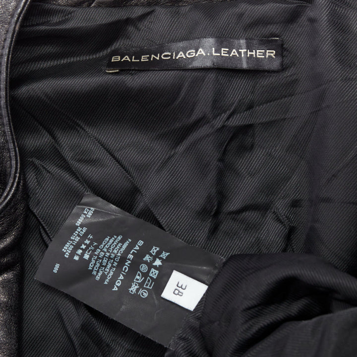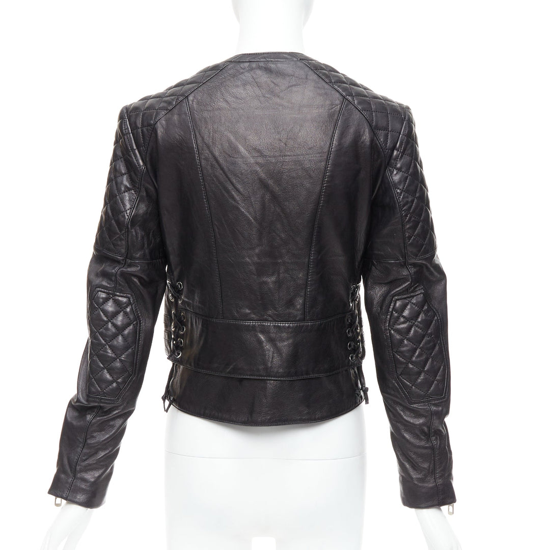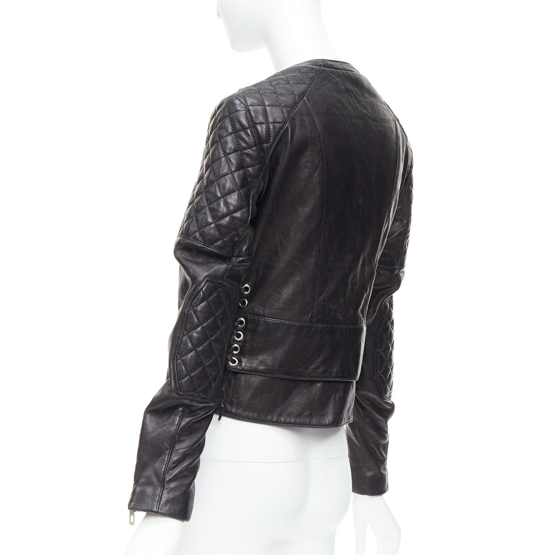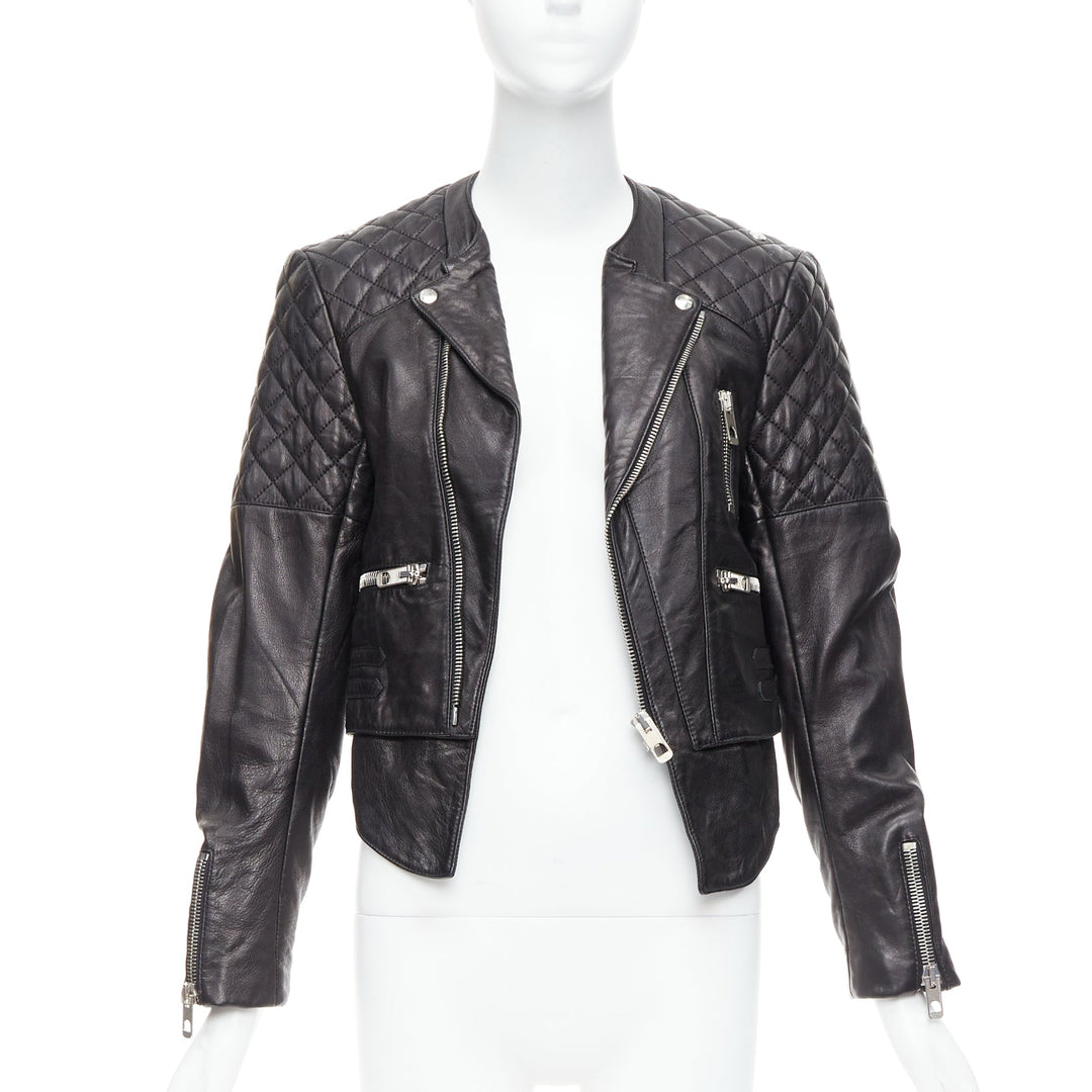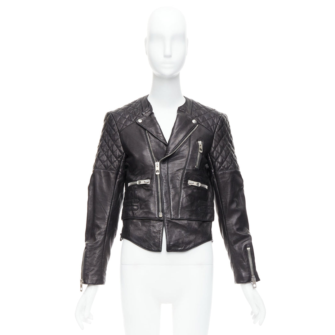 BALENCIAGA 2011 black leather quilted silver zip crop moto biker FR38 M