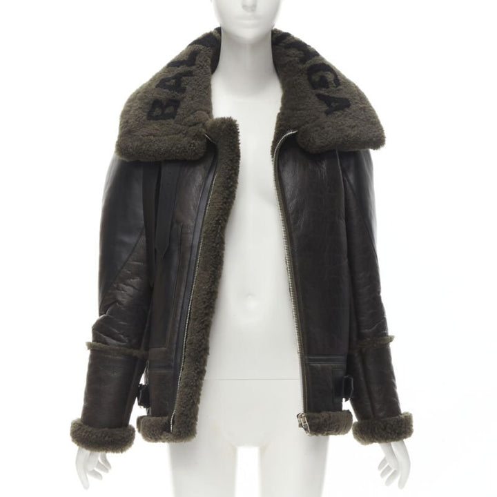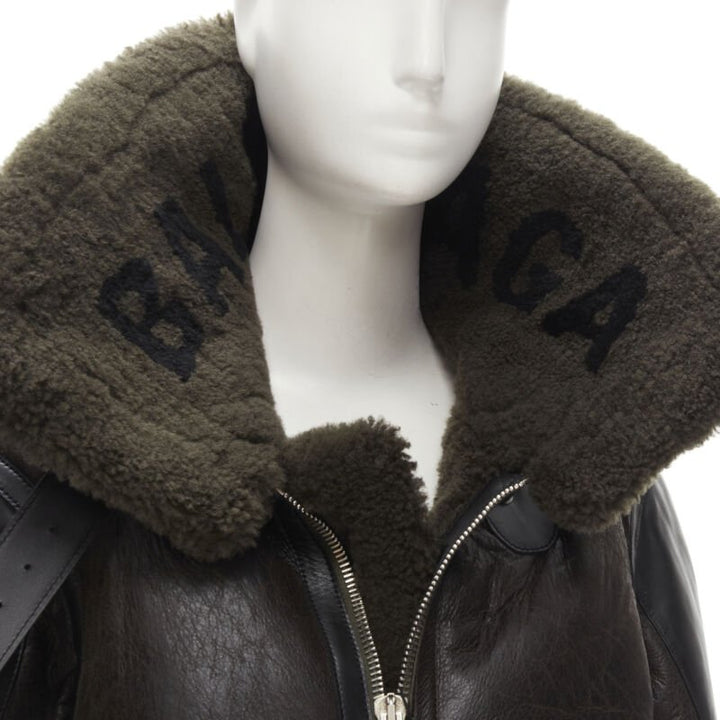 BALENCIAGA Demna 2018 Runway Le Bombardier green shearling aviator jacket XS