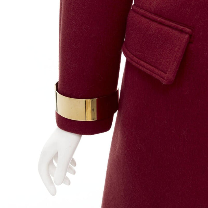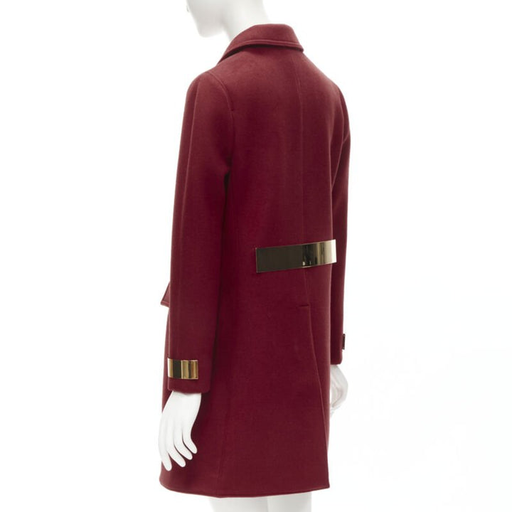 BURBERRY PROPRSUM 90% cashmere blend red gold metal bar coat IT38 XS