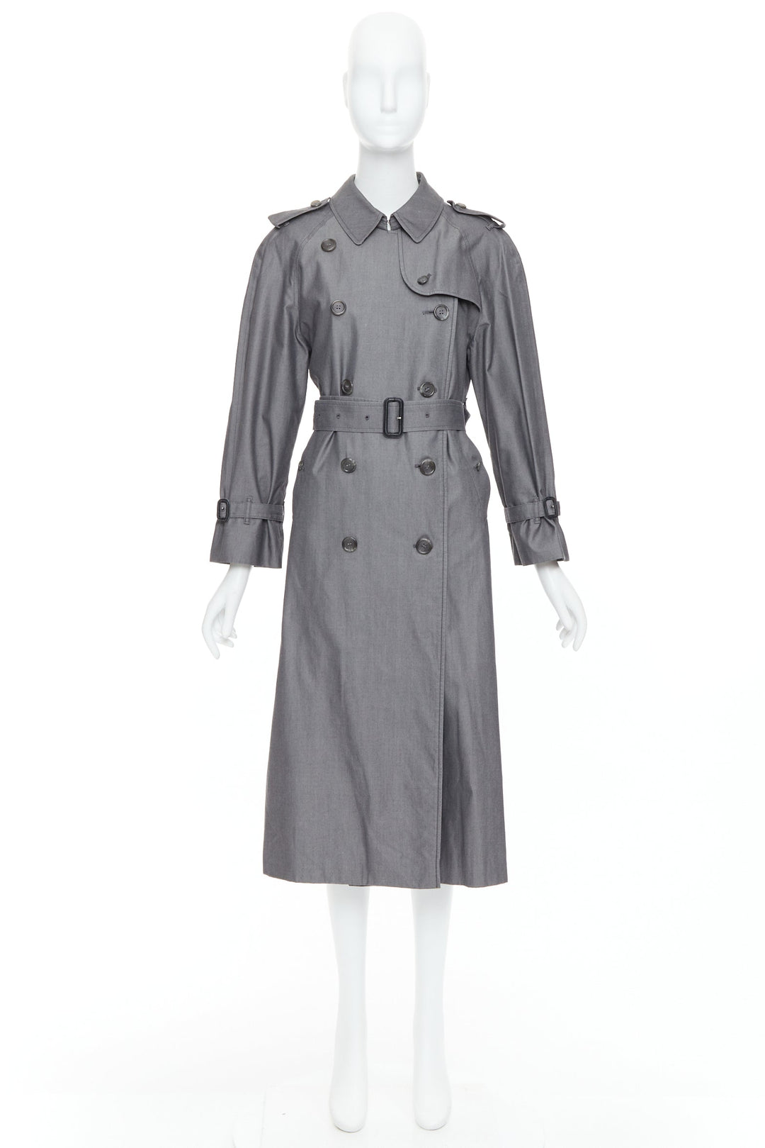BURBERRY Vintage Made To Measure grey cotton trench coat UK12 L
