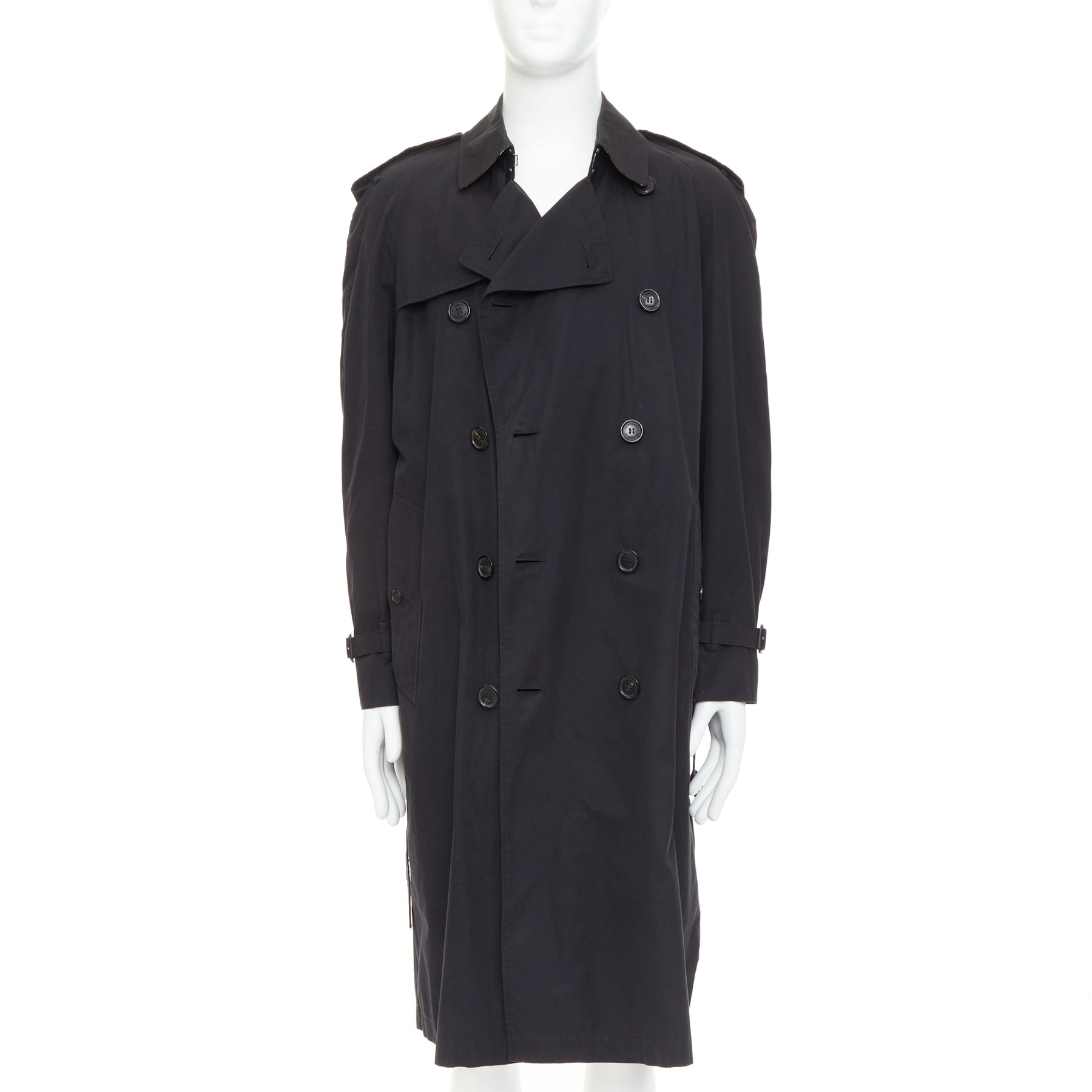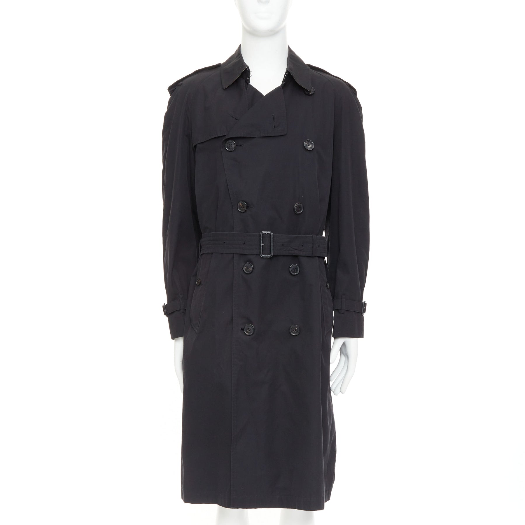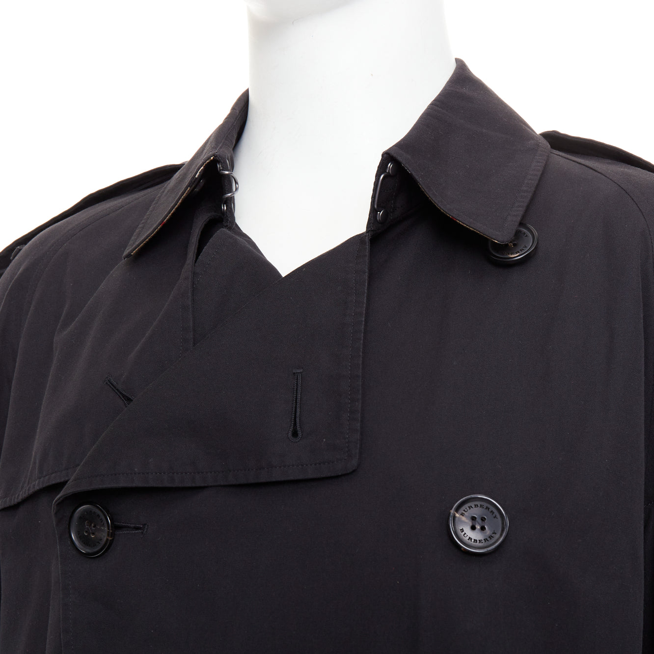 BURBERRY Westminster Heritage black Gabardine House Check lined horn buttons trench coat IT48 M