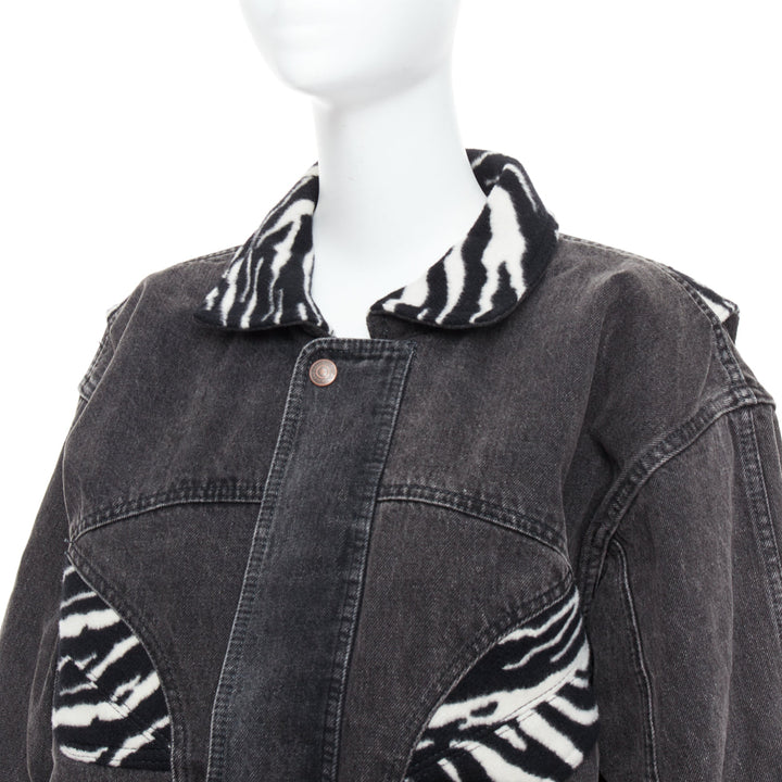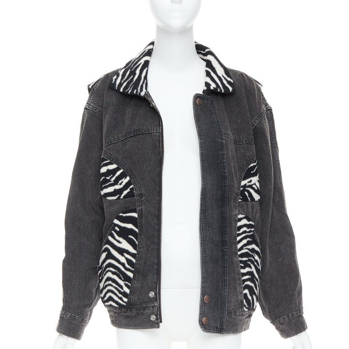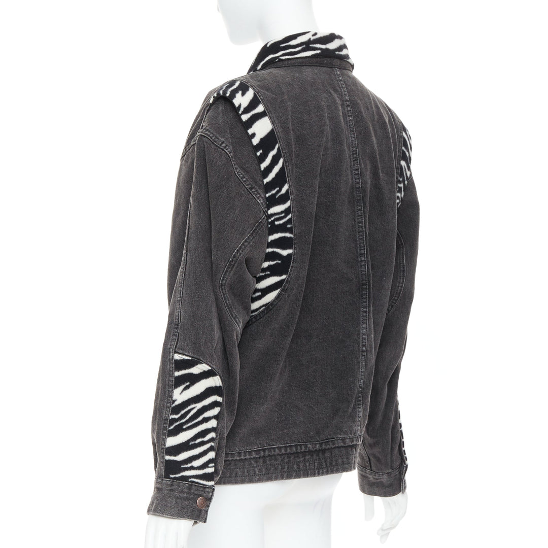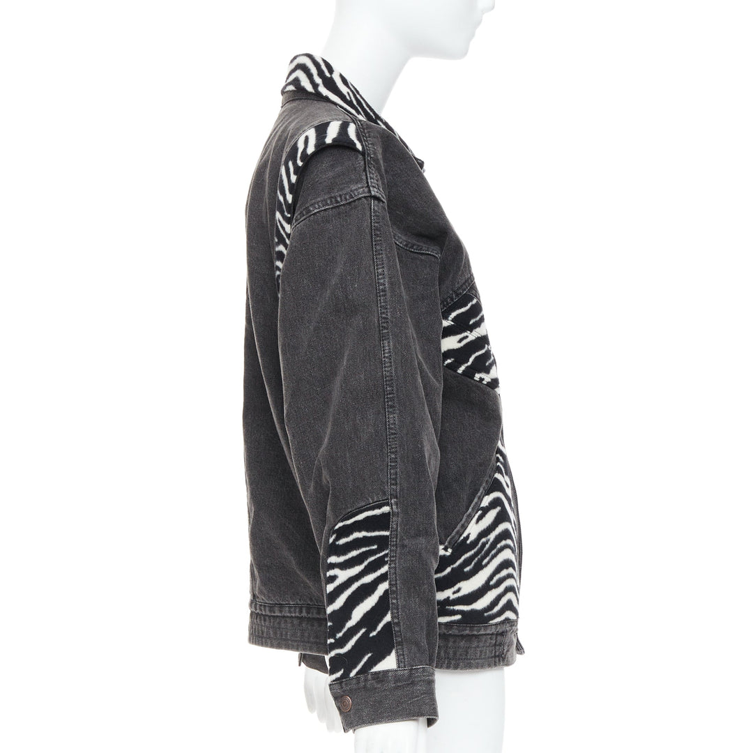 CELINE Hedi Slimane black white zebra wool patch denim jacket S