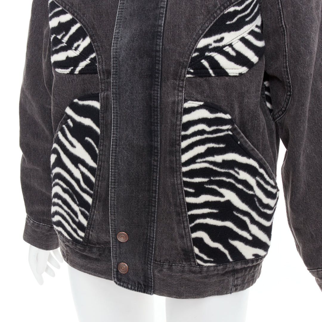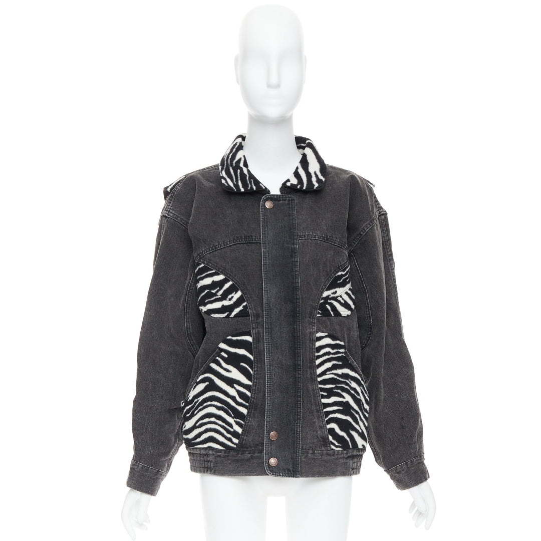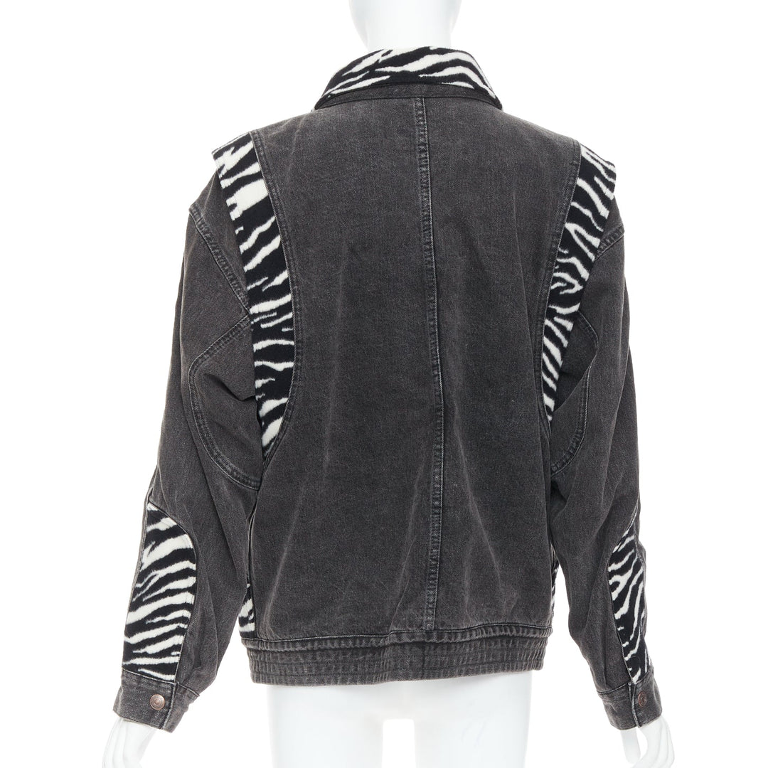 CELINE Hedi Slimane black white zebra wool patch denim jacket S