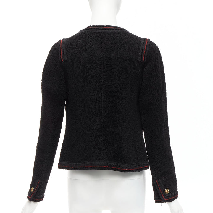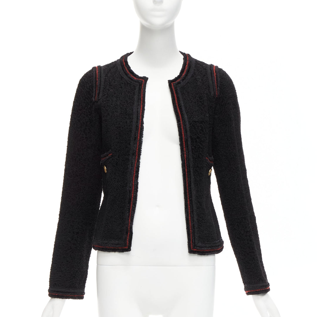 CHANEL 09A Paris Moscow black tweed leather lined CC logo jacket FR34 XS