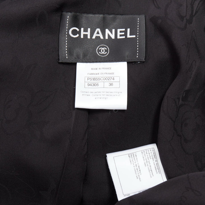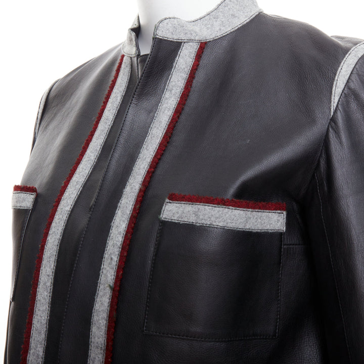 CHANEL 10A Paris Shanghai Runway black calfskin grey wool trim 4 pocket jacket FR36 S