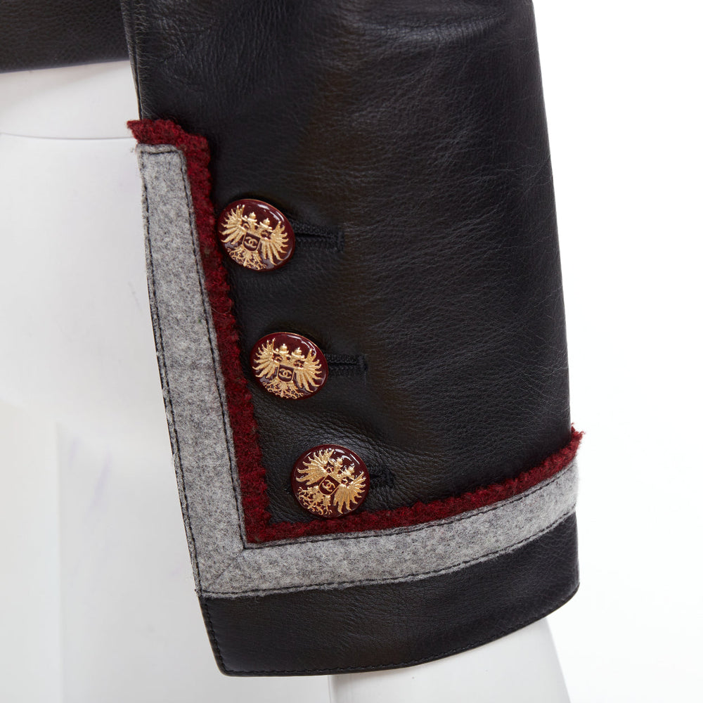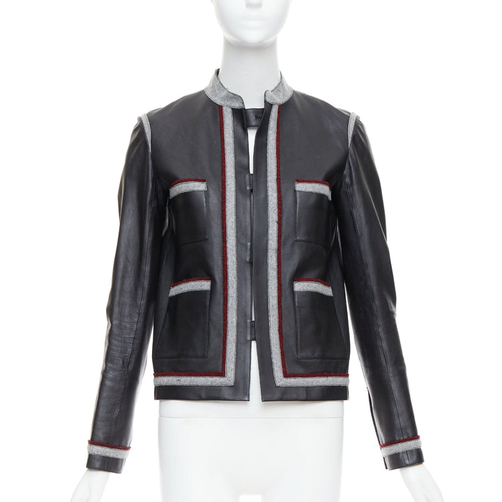 CHANEL 10A Paris Shanghai Runway black leather grey trim 4 pocket jacket FR36 S