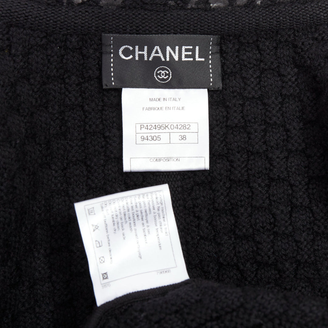 CHANEL 11A grey black painted tweed CC square buttons peplum coat FR38 M