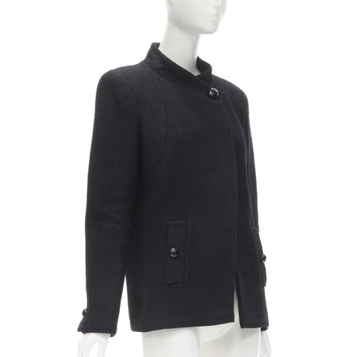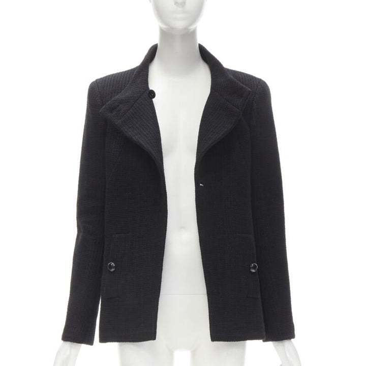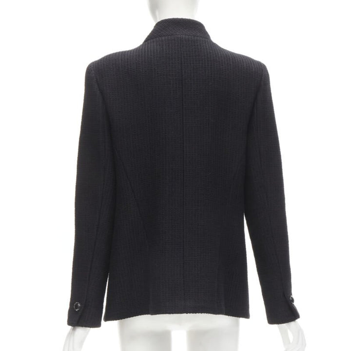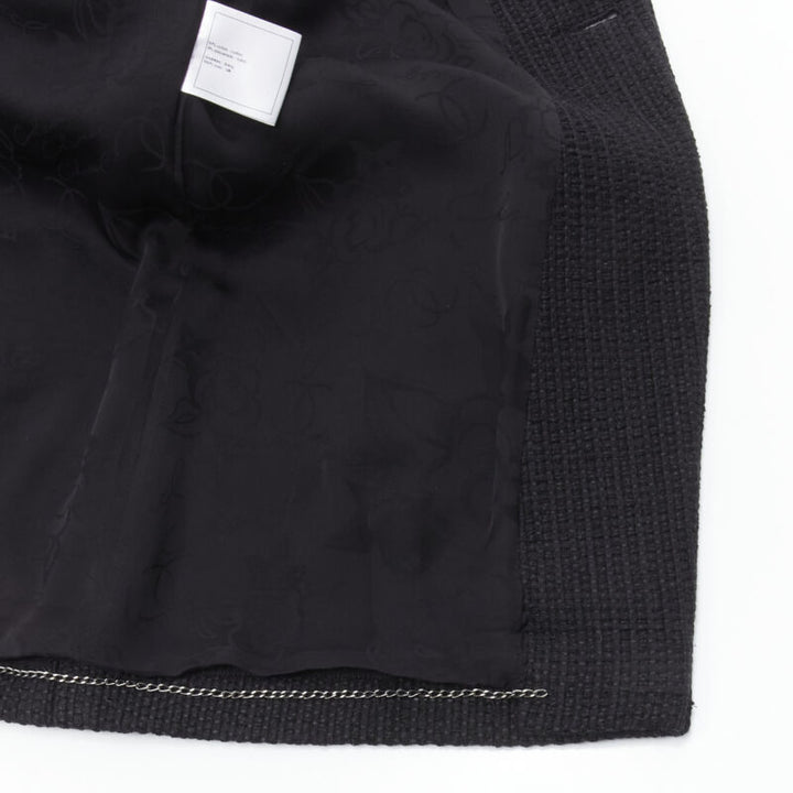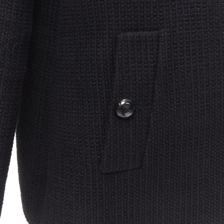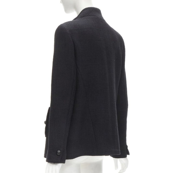 CHANEL 15P Act 1 black lattice tweed CC button wrap little black jacket FR44 2XL