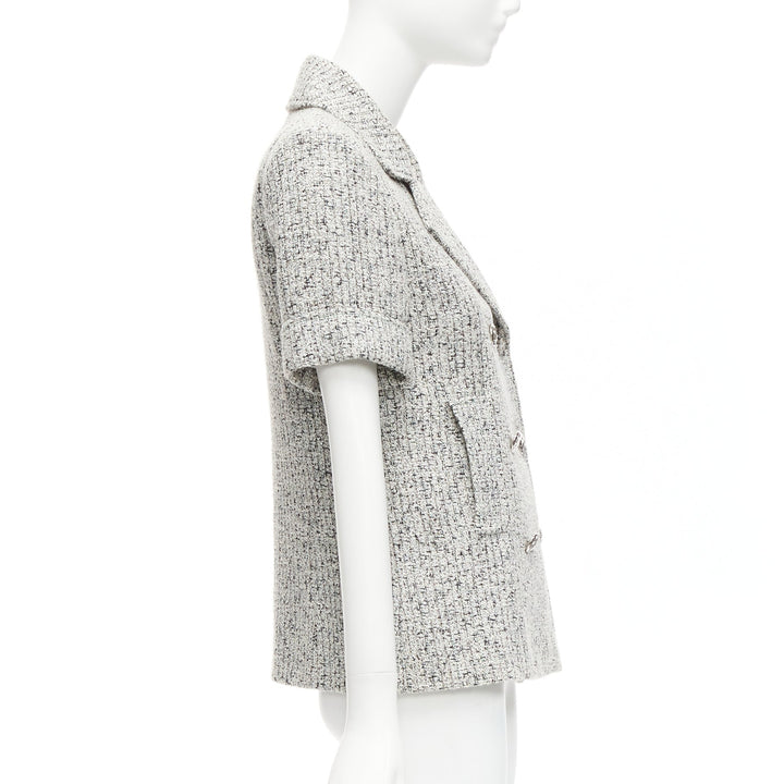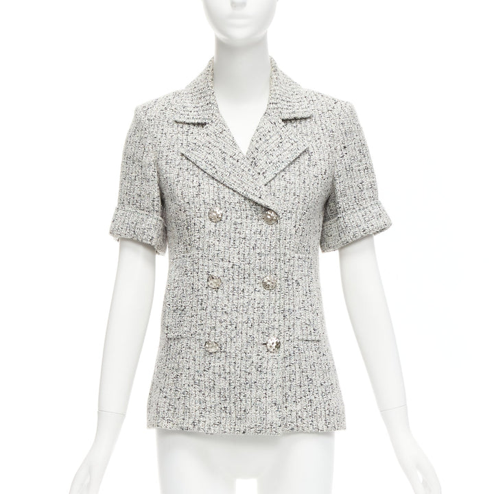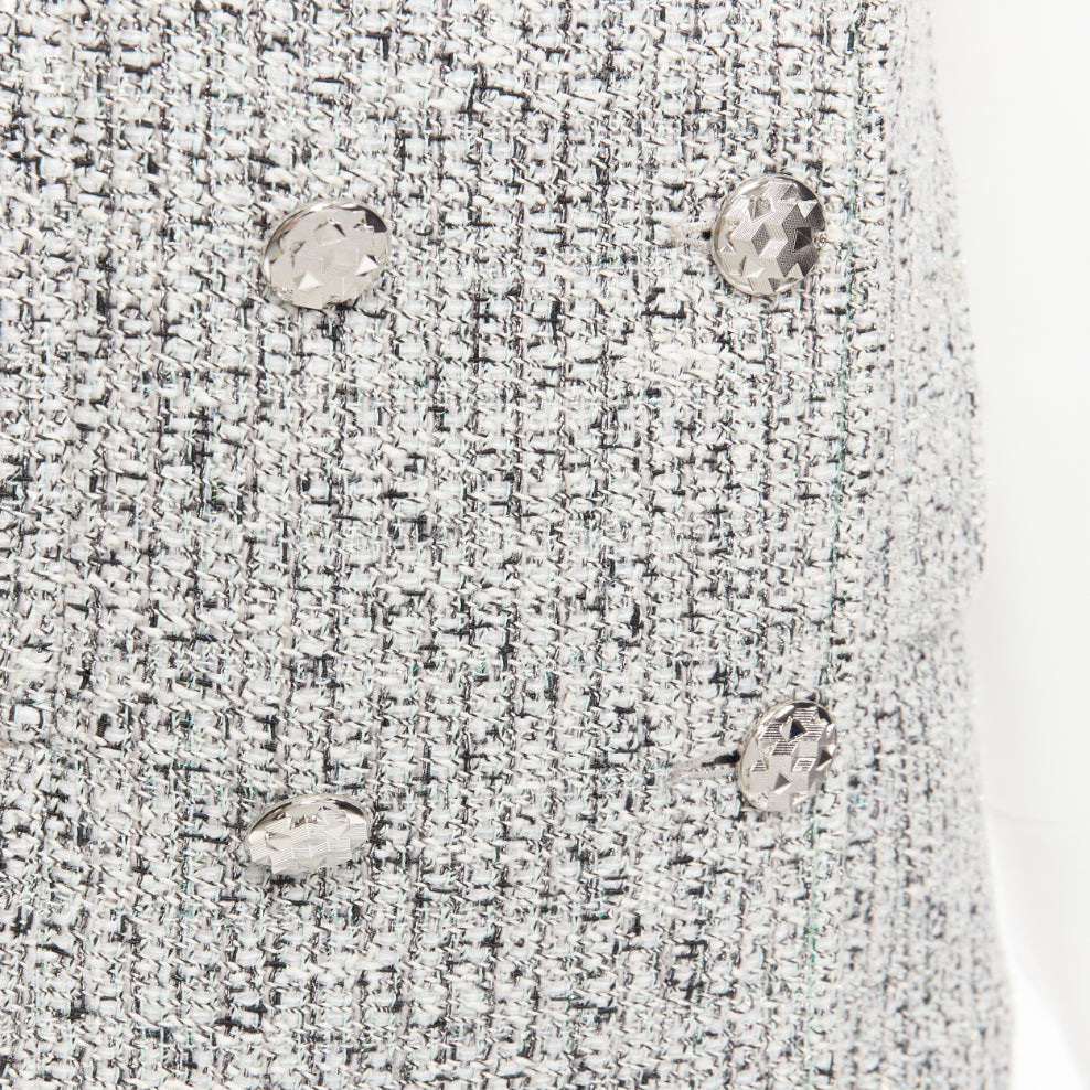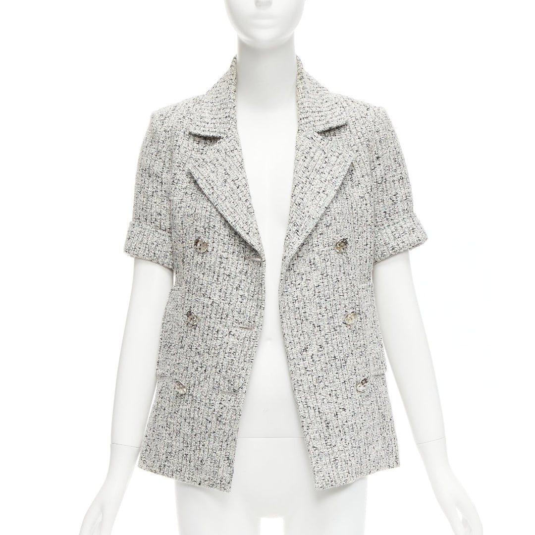 CHANEL 2016 Fantasy Tweed silver CC buttons cuffed sleeves jacket FR36 S