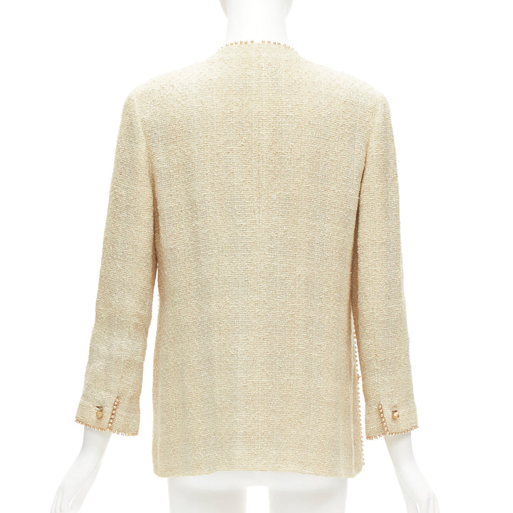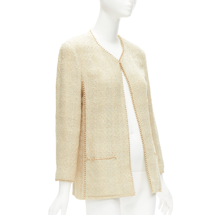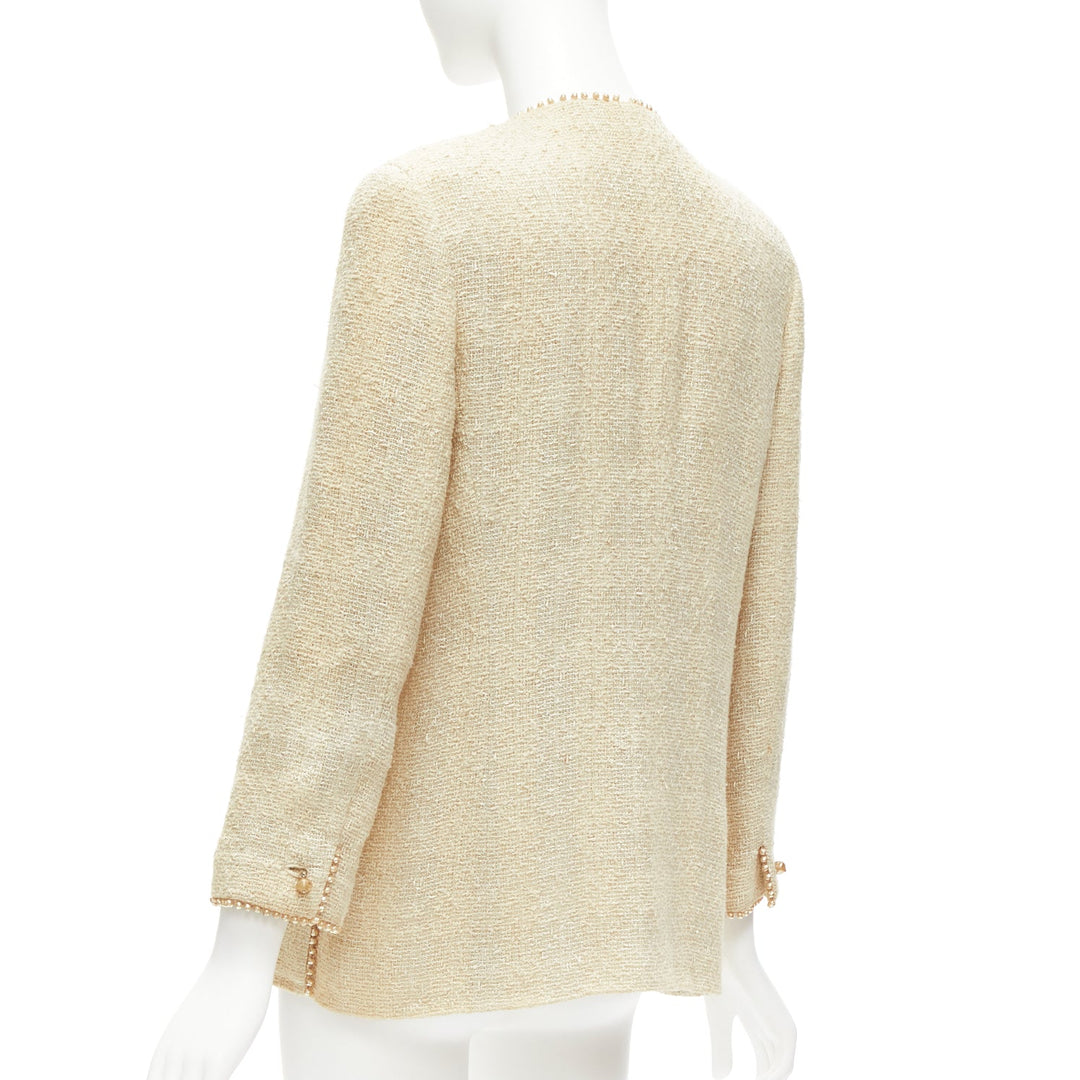 CHANEL Karl Lagerfeld 99P Vintage pearl trim boucle tweed jacket FR40 L