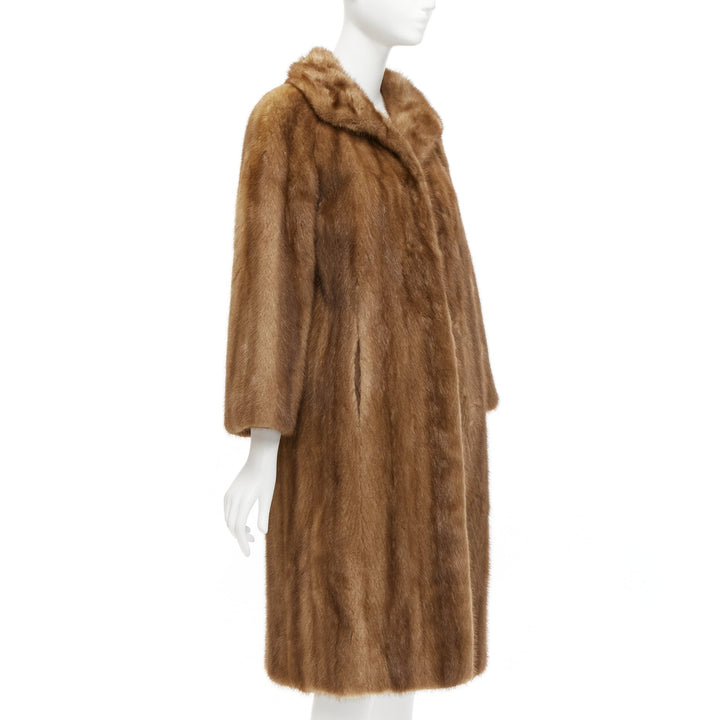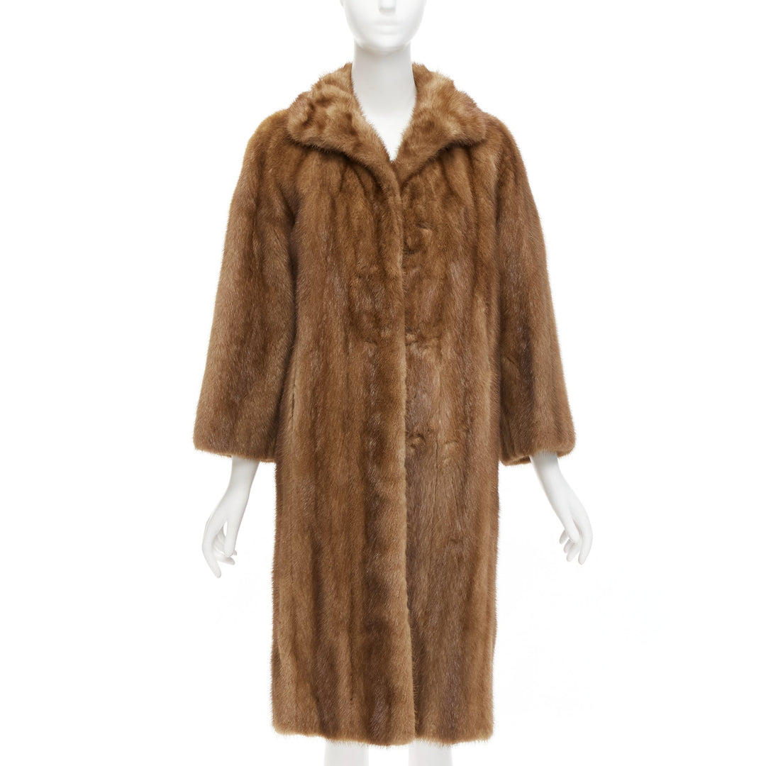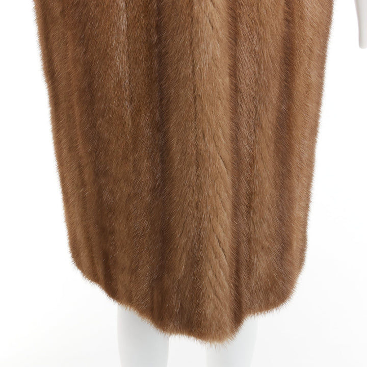 CHOMBERT brown genuine fur patched longline collared long sleeve coat