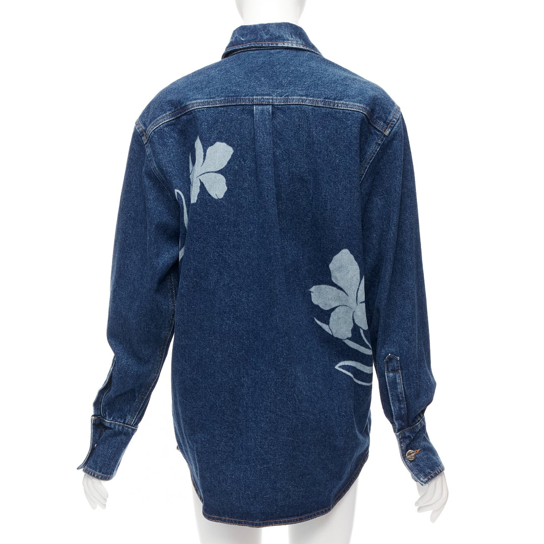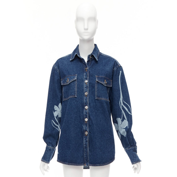 Extra Details: Part of the brand's Resort '22 collection, David Koma's shirt is cut from blue organic denim printed with tonal blooms at the sleeves. It's designed in an oversized shape and has buttoned front patch pockets. Style yours with the matching mini skirt and stockings, just like it was at the presentation.
