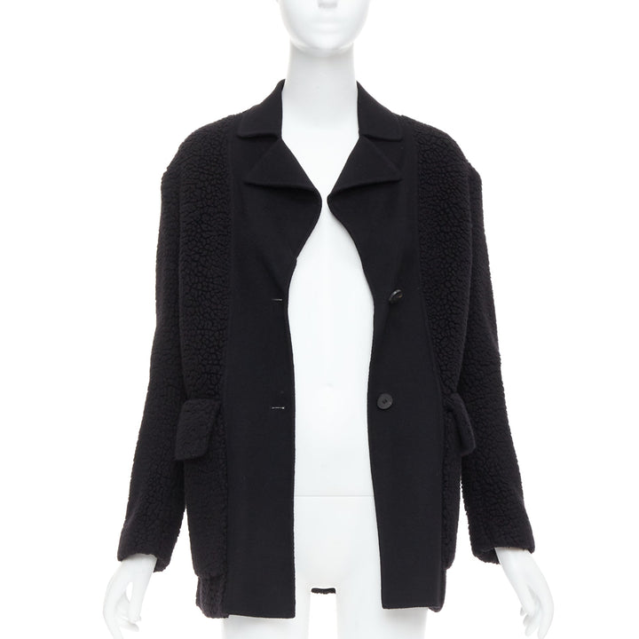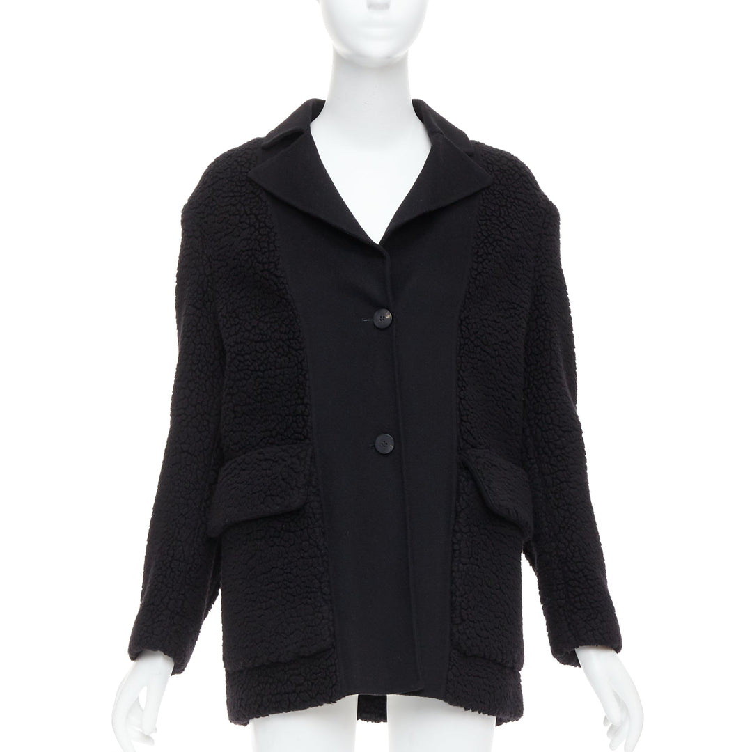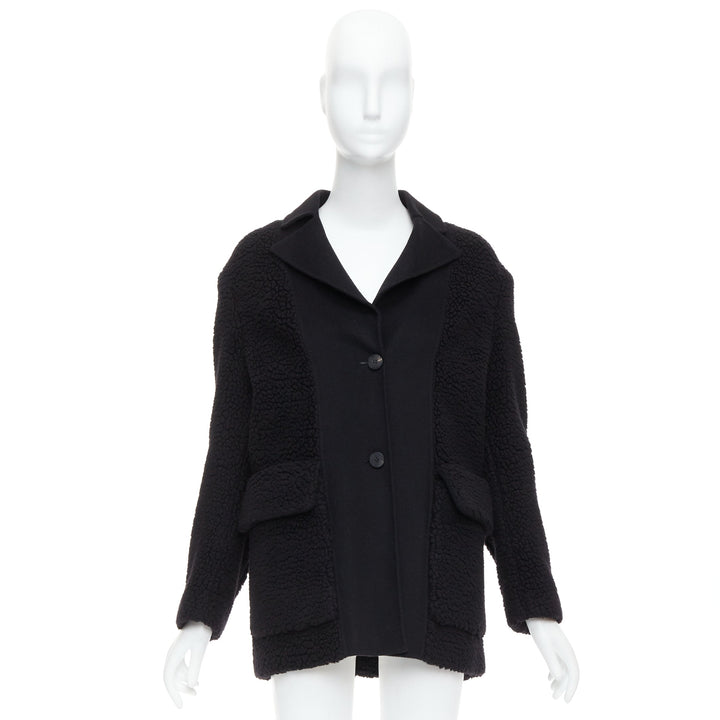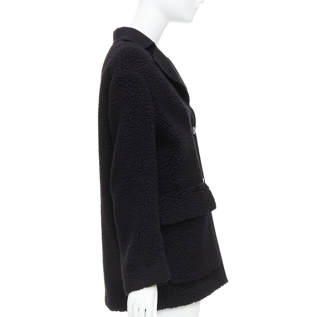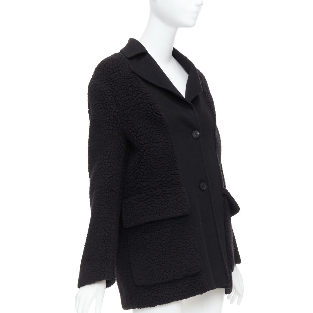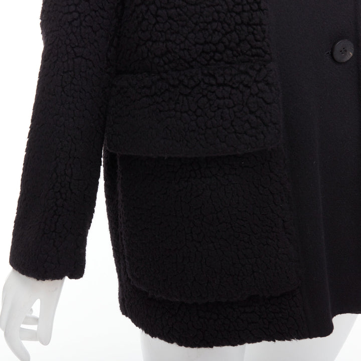 DIOR 100% cashmere black teddy textured pocketed coat FR34 XS