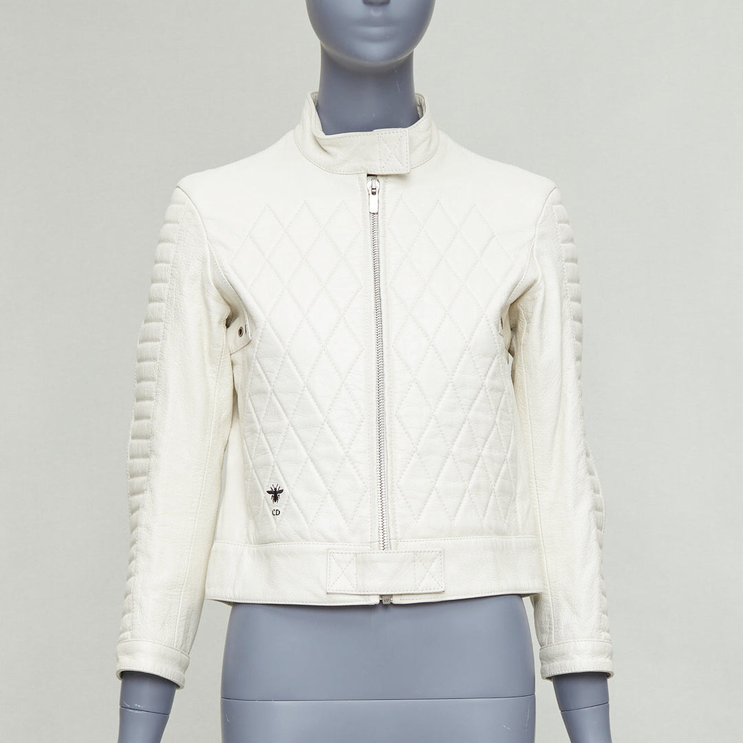DIOR Runway cream goat leather CD bee quilted biker jacket FR38 M