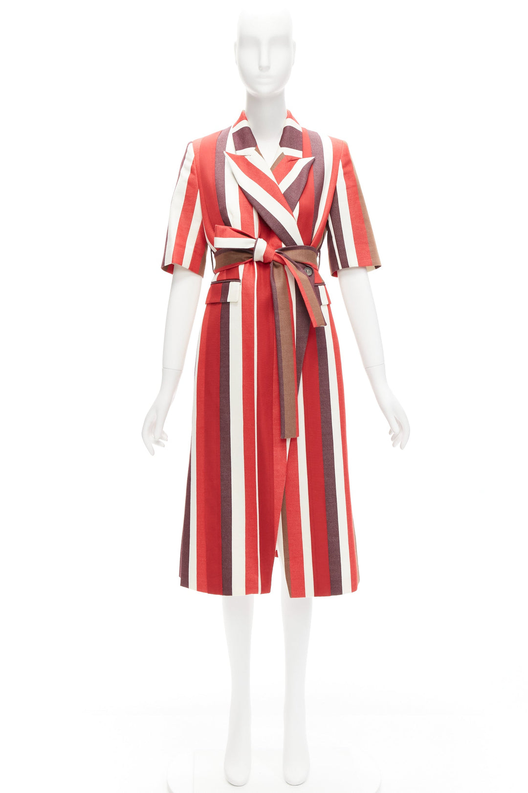 FRENKEN red bold graphic stripes cotton tie belt long coat IT34 XXS