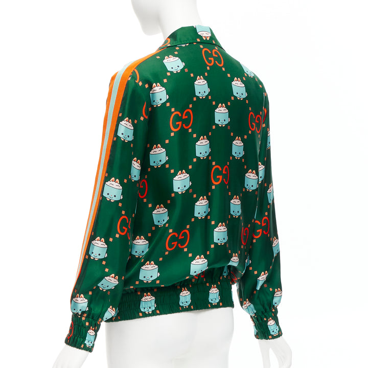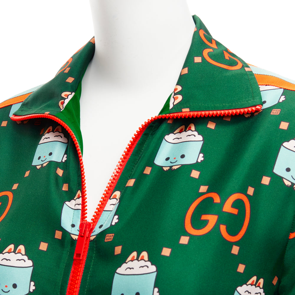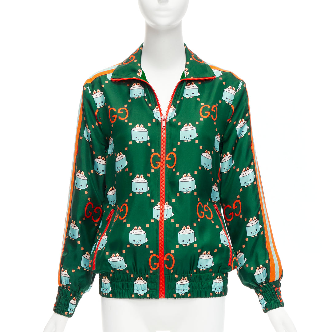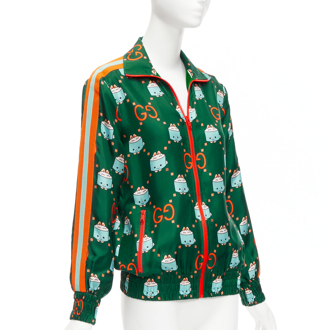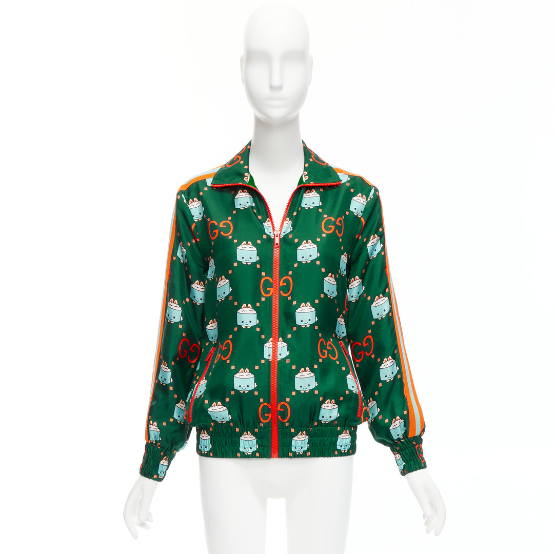 GUCCI 2023 Pikarar GG logo monogram green orange silk track jacket XXS