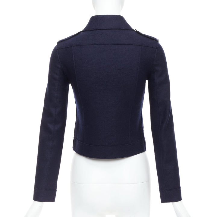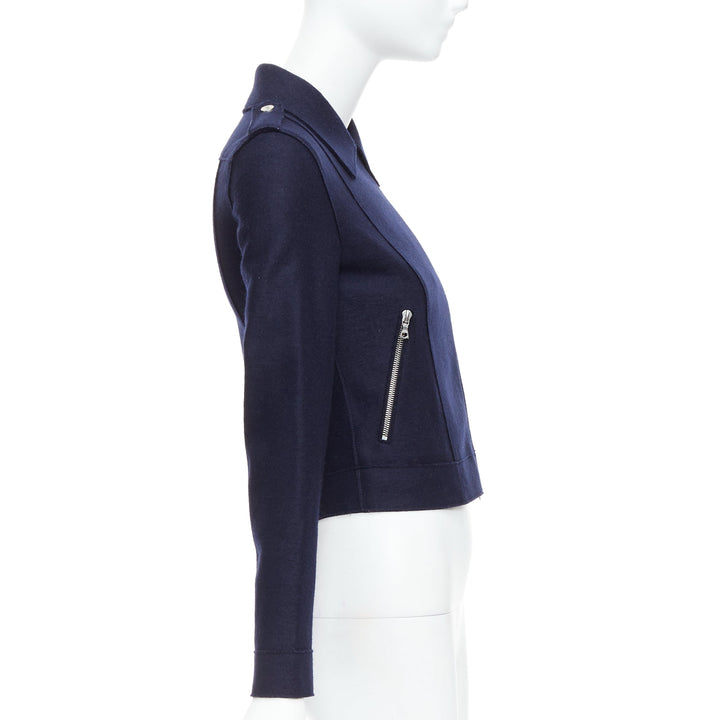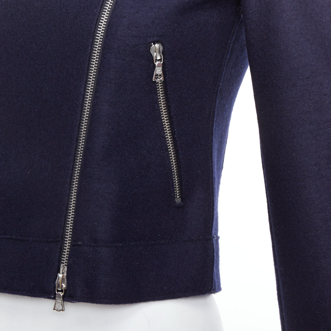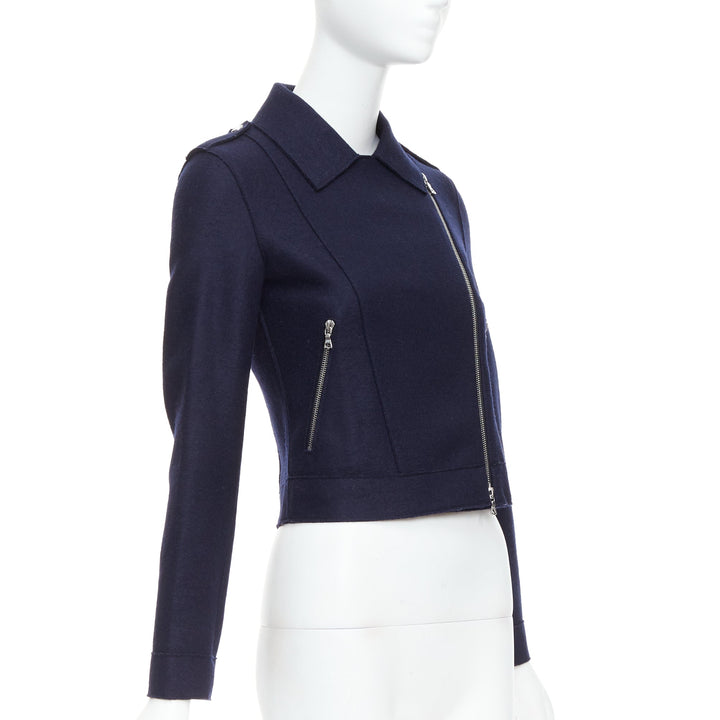 HARRIS WHARF LONDON navy virgin wool cropped biker jacket IT38 XS