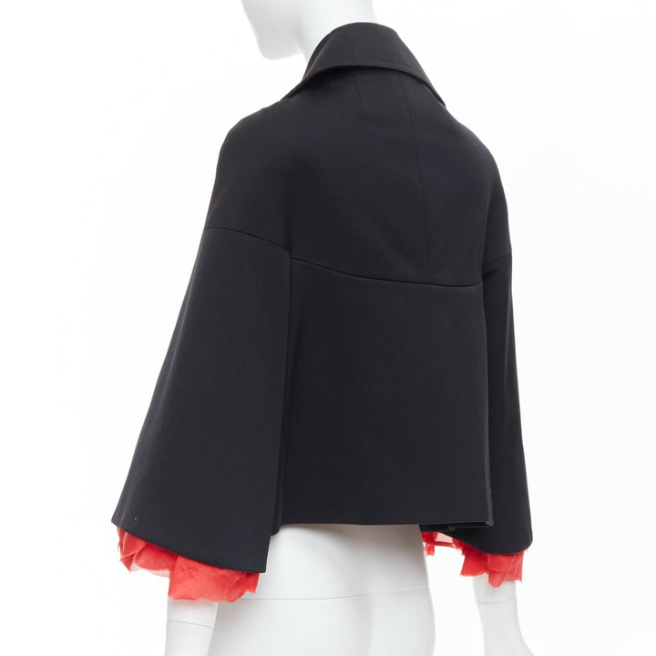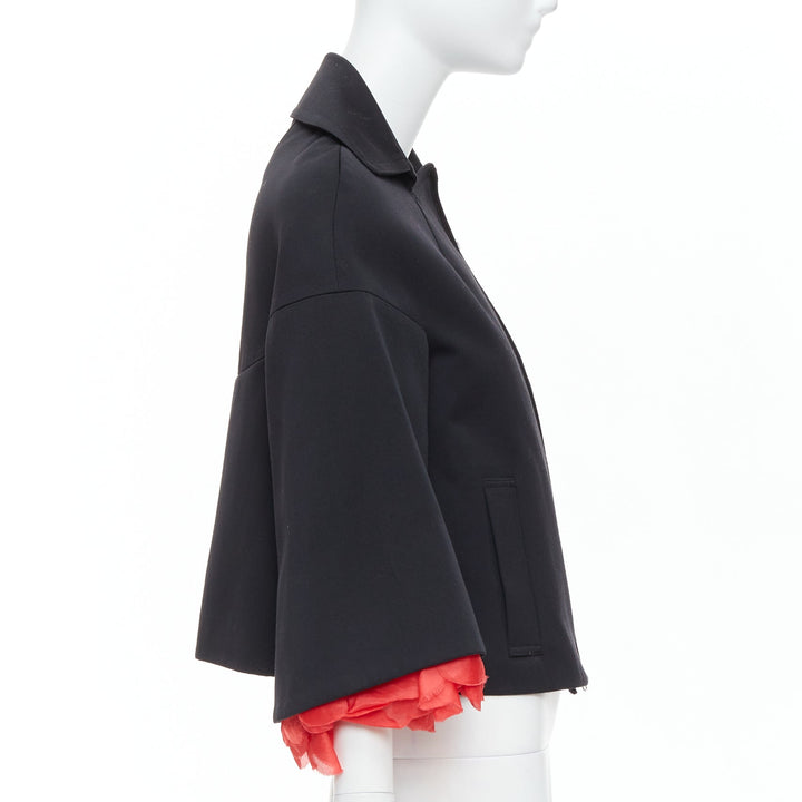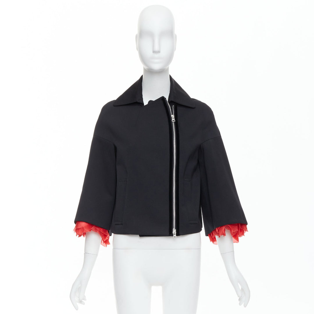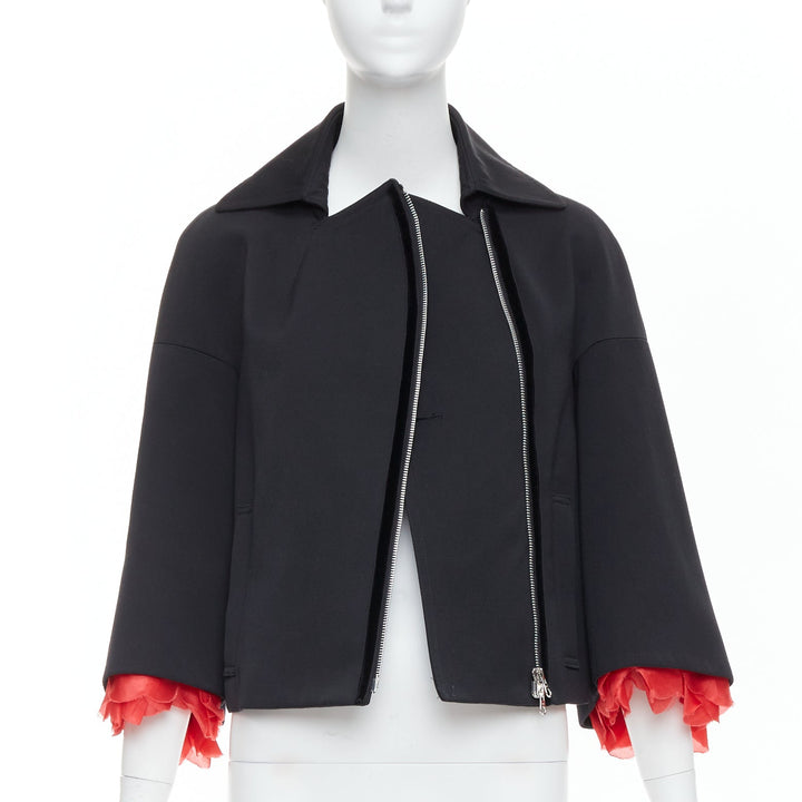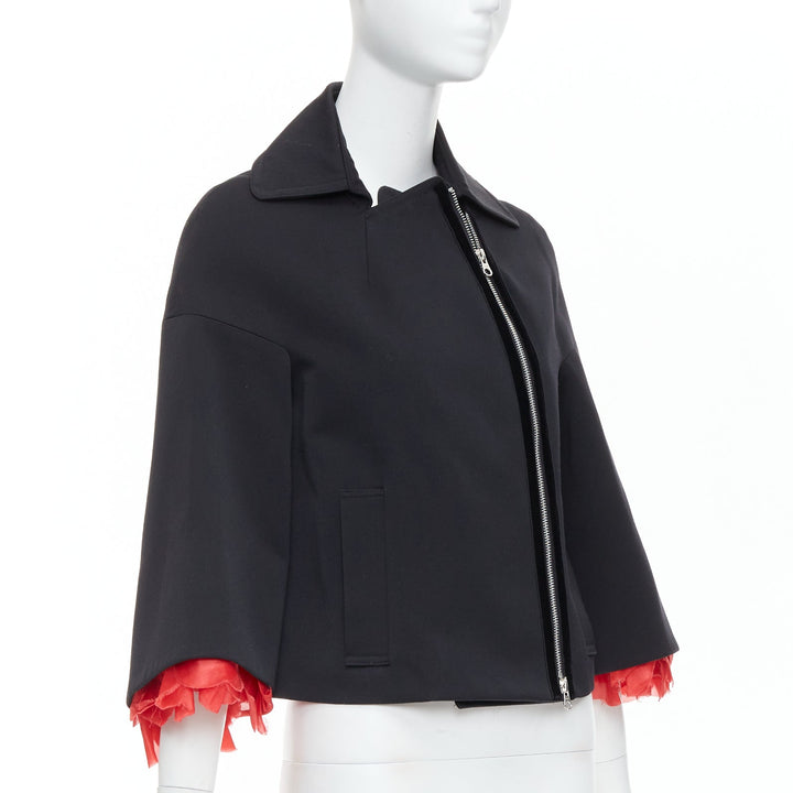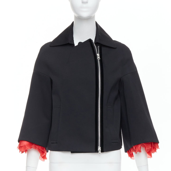 KEITA MARUYAMA black wool blend red petal cuffs flare biker jacket JP2 M