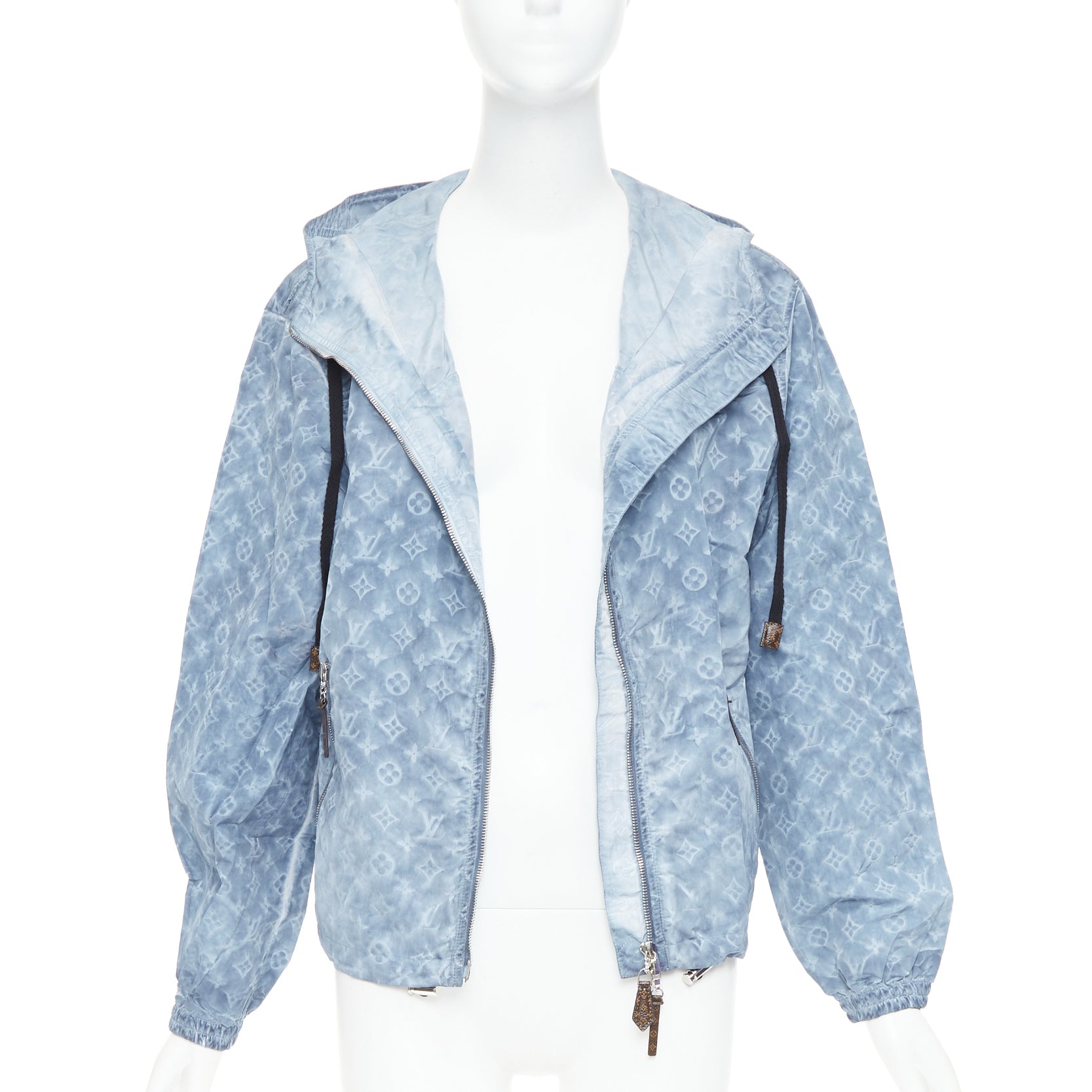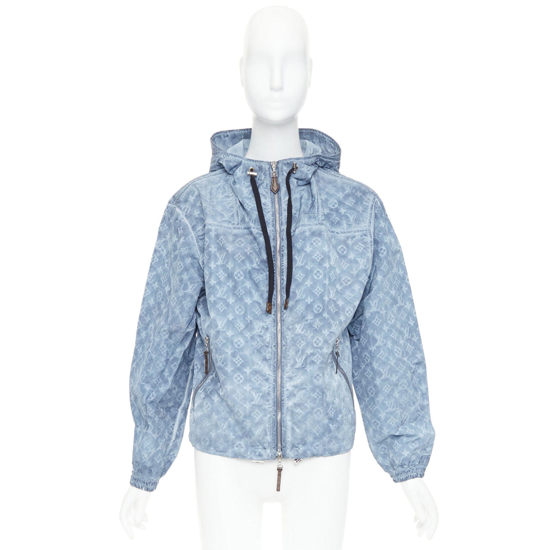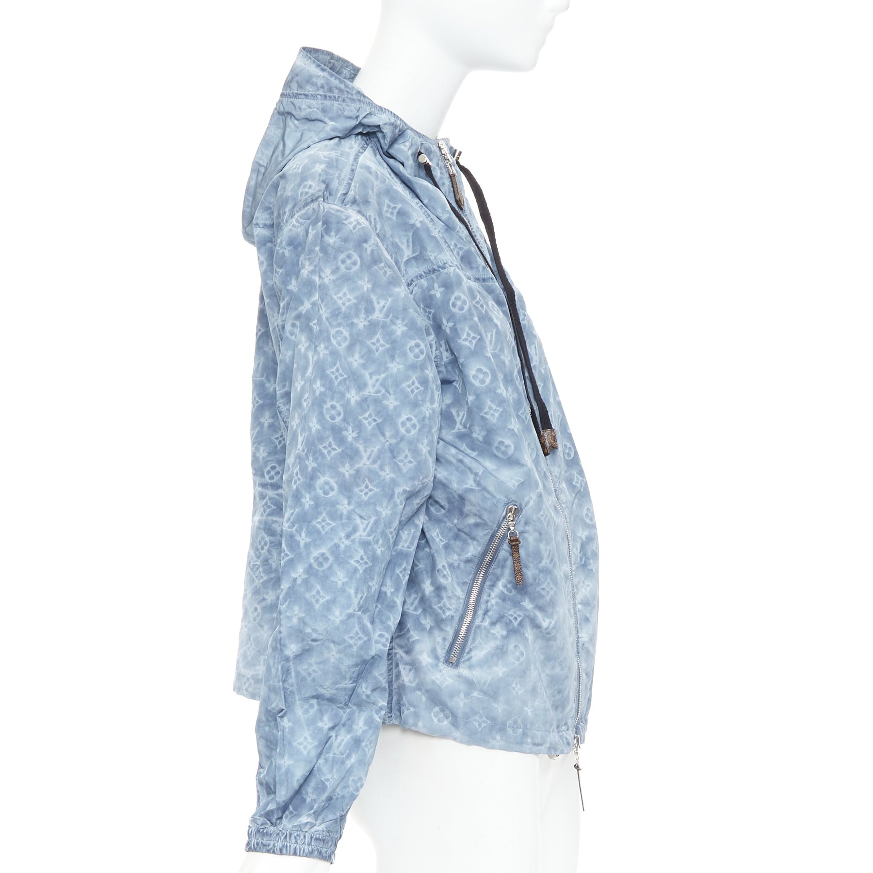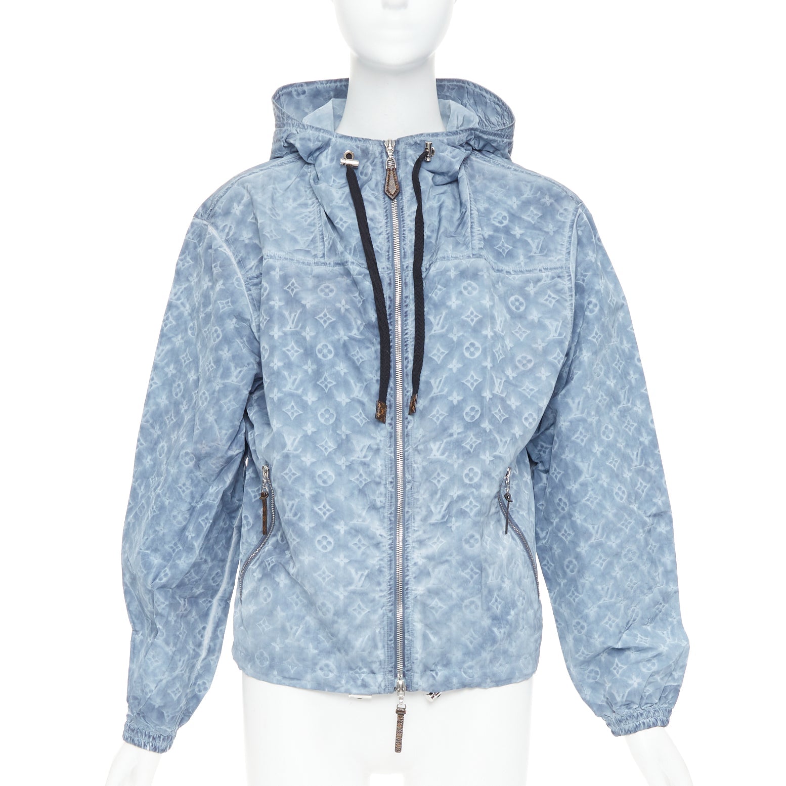 LOUIS VUITTON blue washed monogram print hooded zip anorak jacket FR38 M