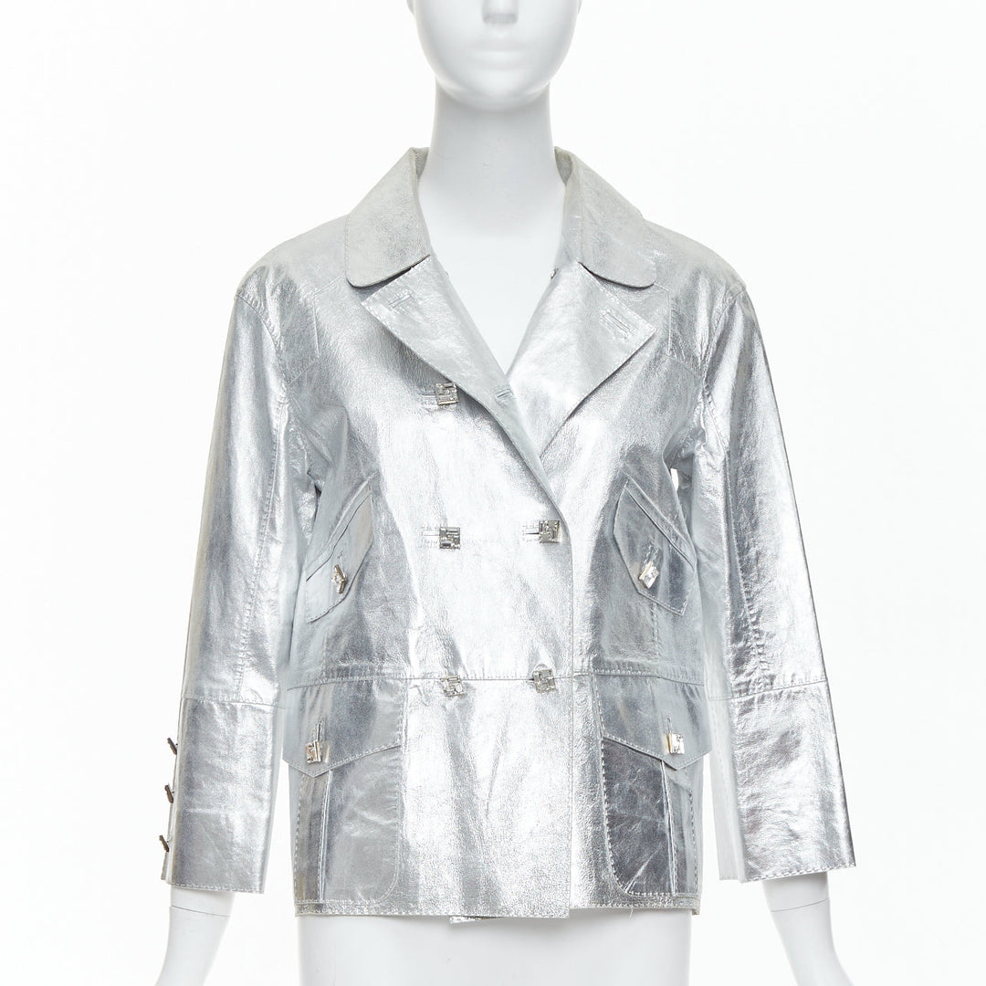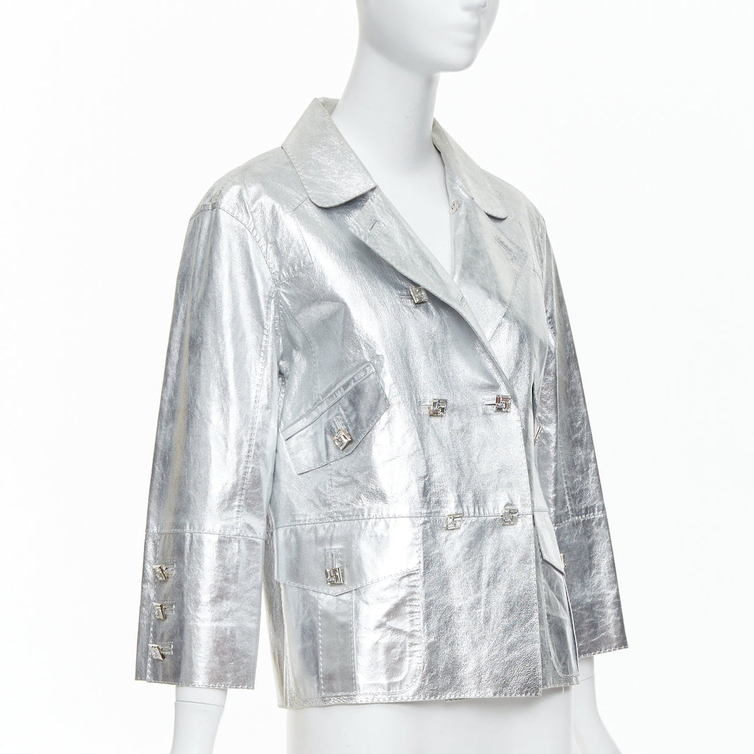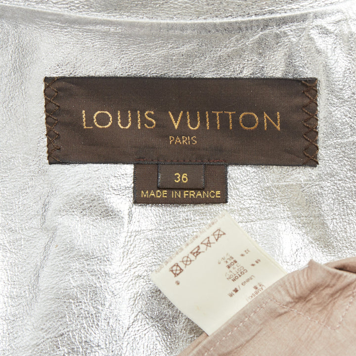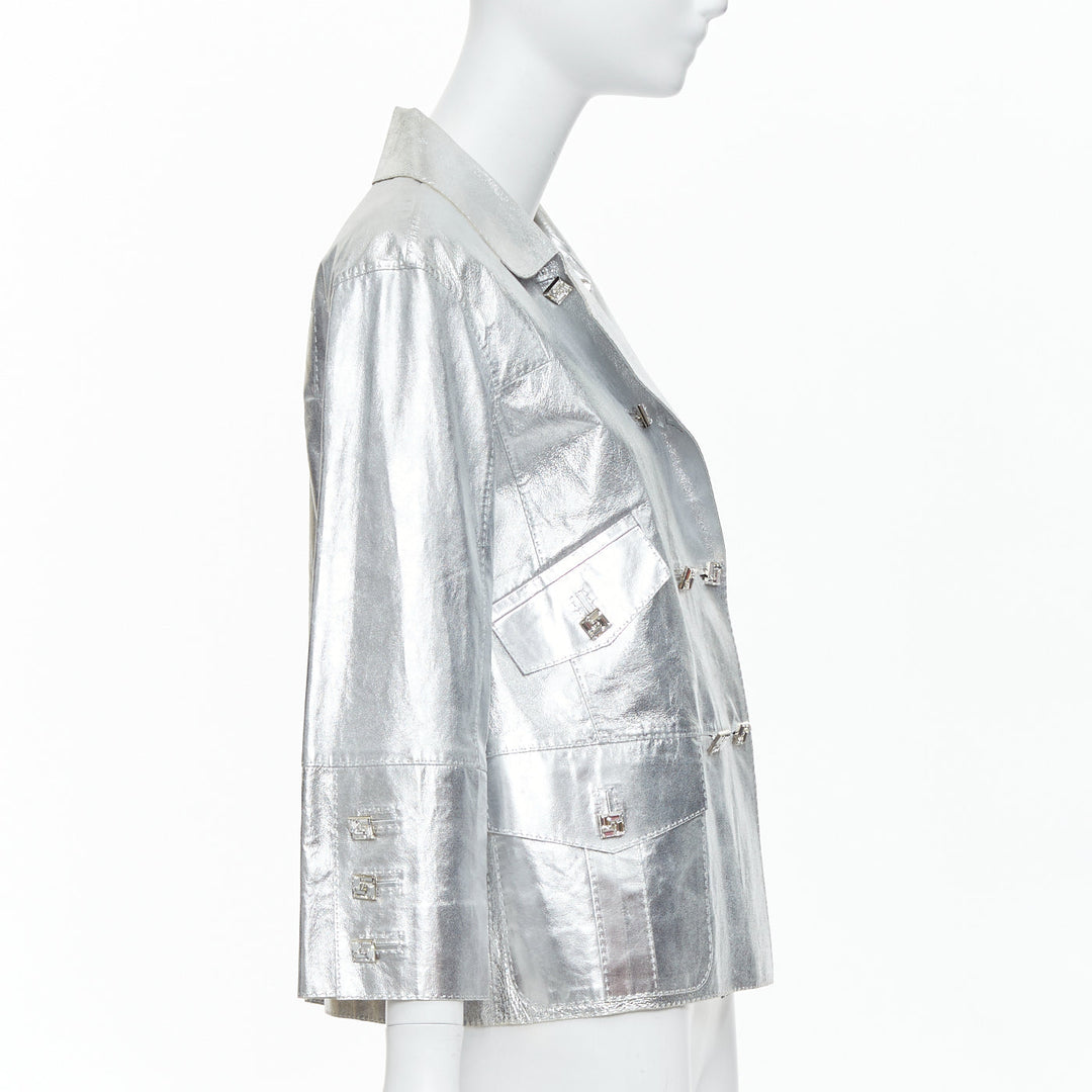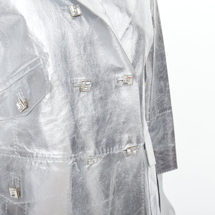 LOUIS VUITTON Marc Jacobs metallic silver leather crystal button jacket FR36 S