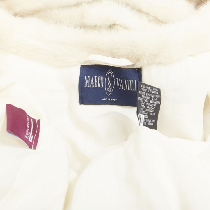 MARCO VANOLI cream tulle fur stripes buttoned asymmetric hooded jacket IT40 S