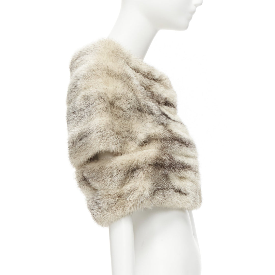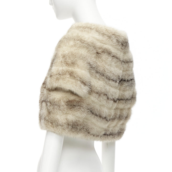 MARNI beige genuine fur striped colouring shawl bolero crop jacket IT40