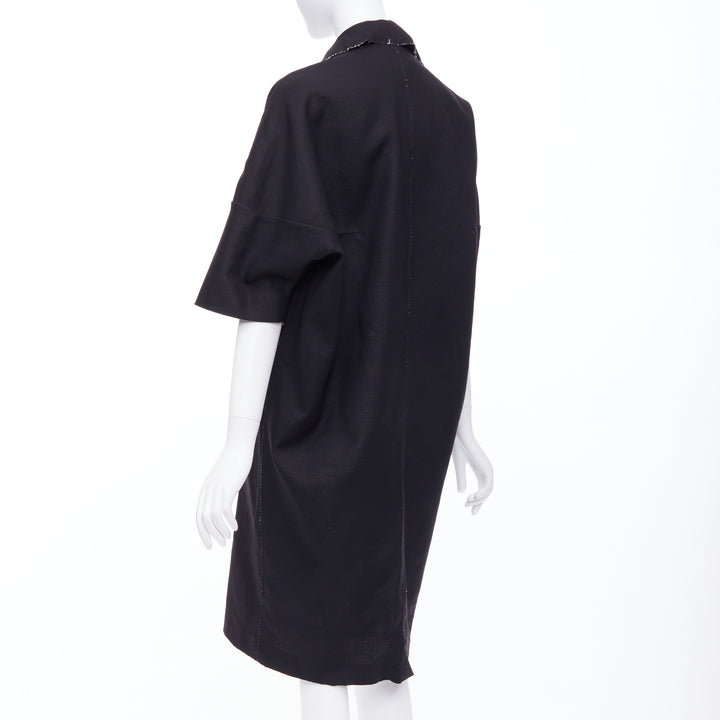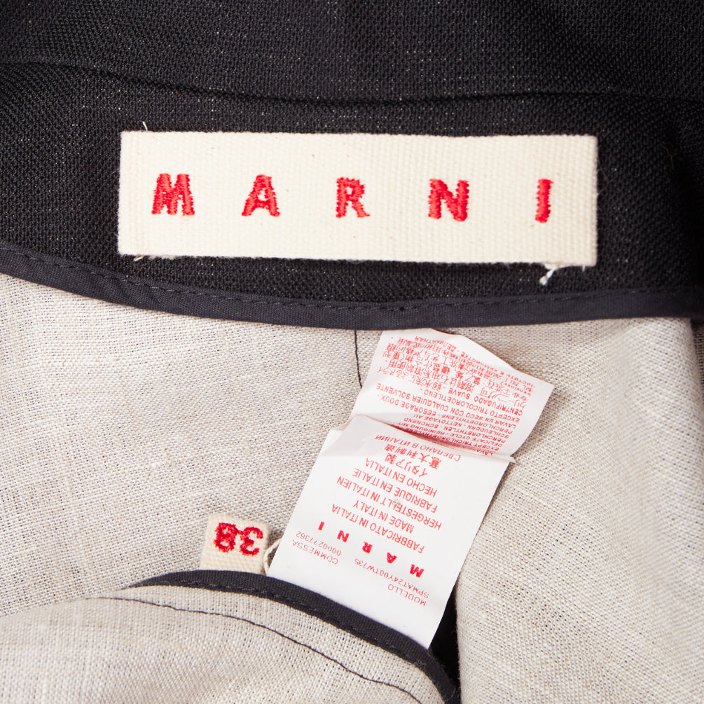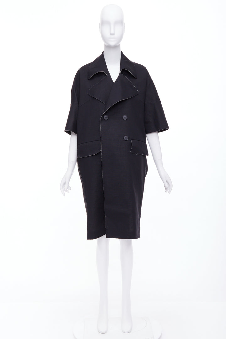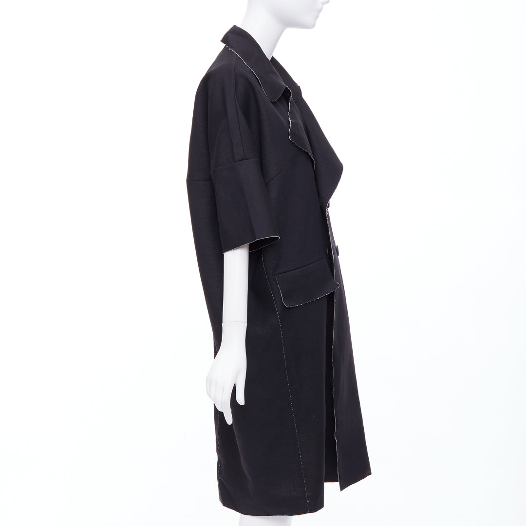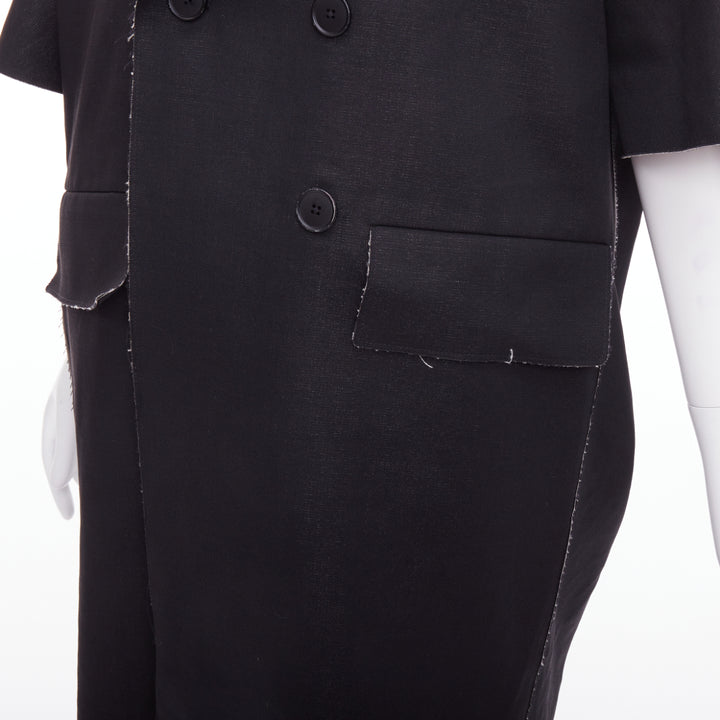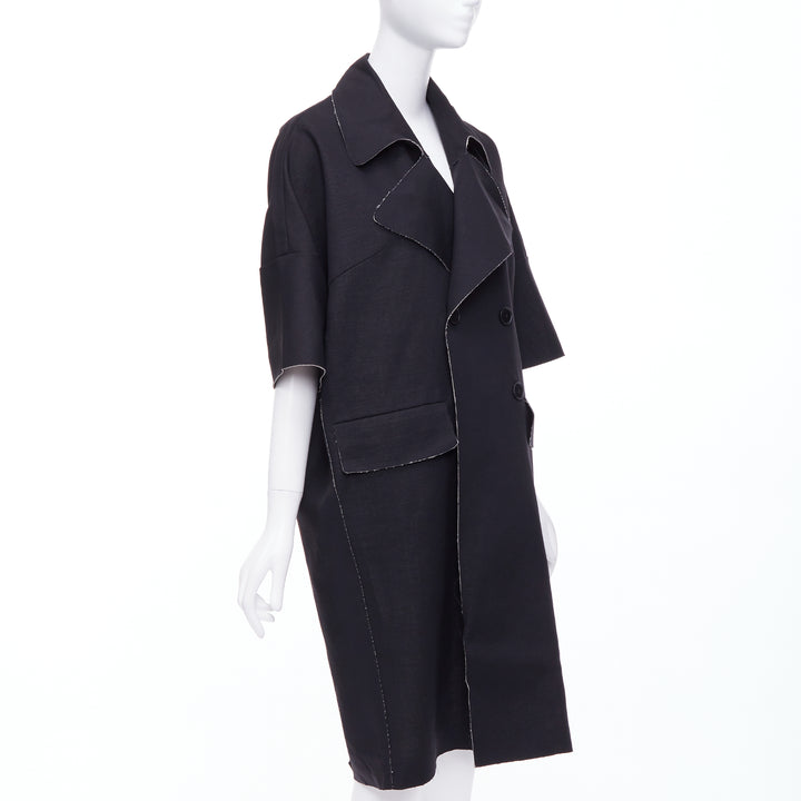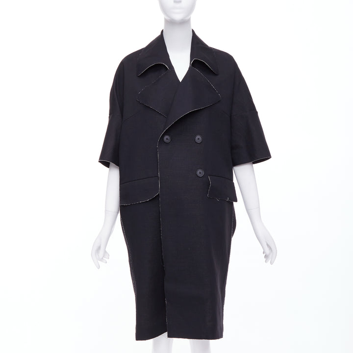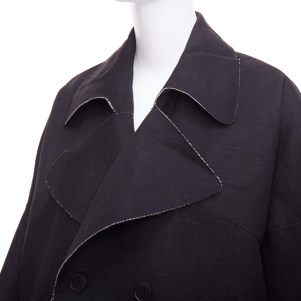 MARNI black wool linen frayed edge double breasted long coat IT38 XS