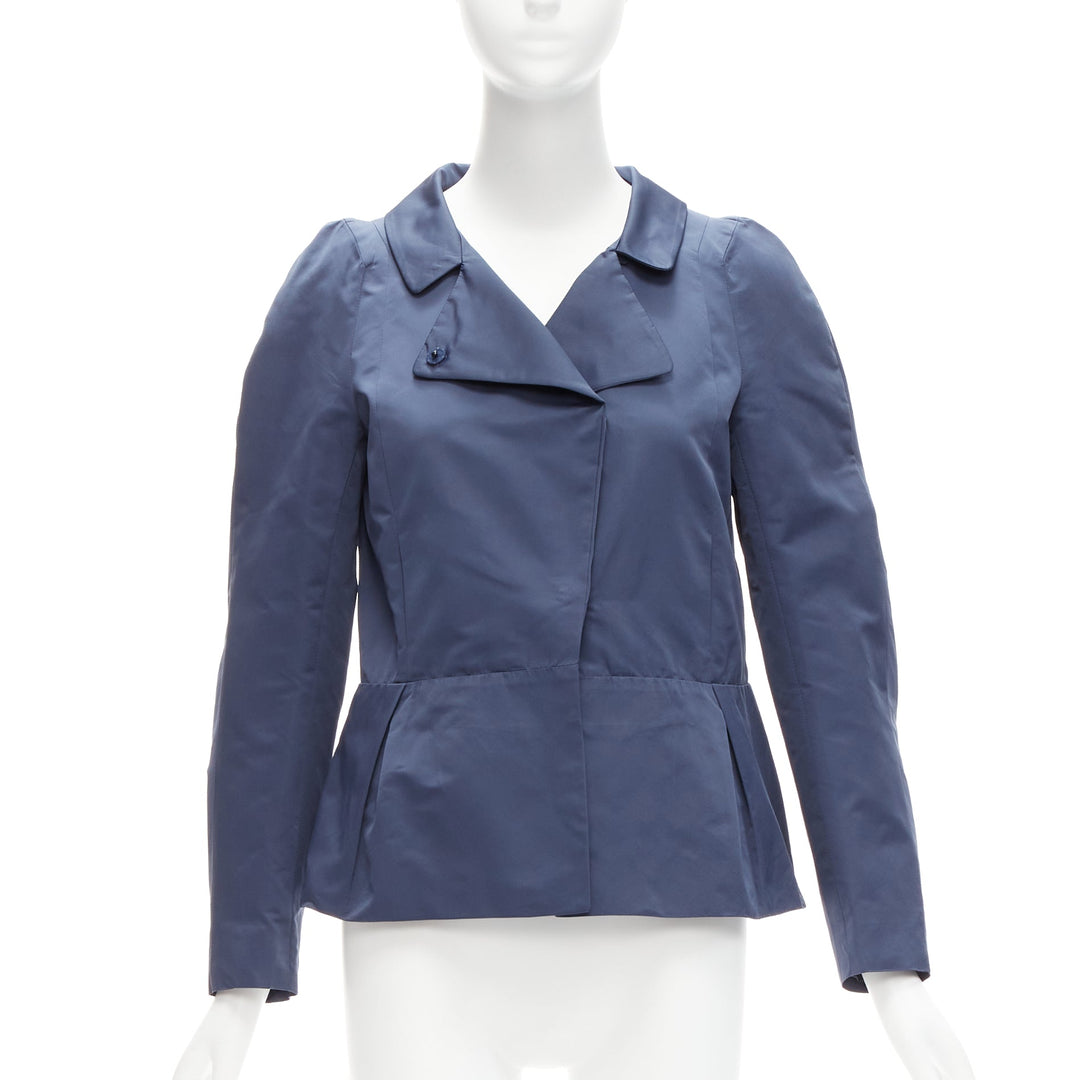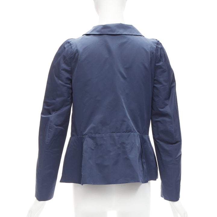 MARNI blue satin structural puff shoulder peplum minimal cropped jacket IT42 M