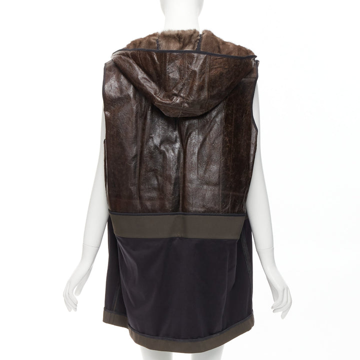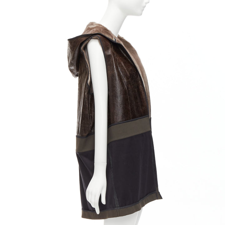MARNI Mink Gilet Reversible brown colorblocked textured fur hooded vest IT40 S