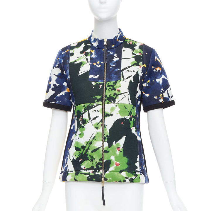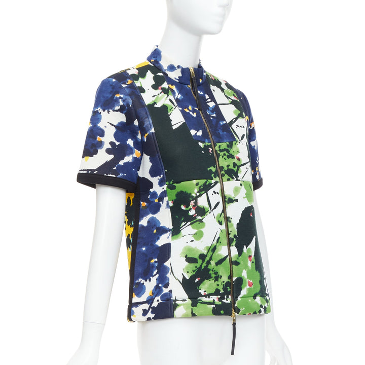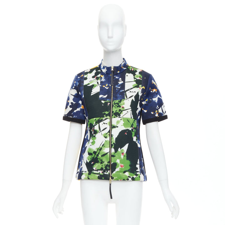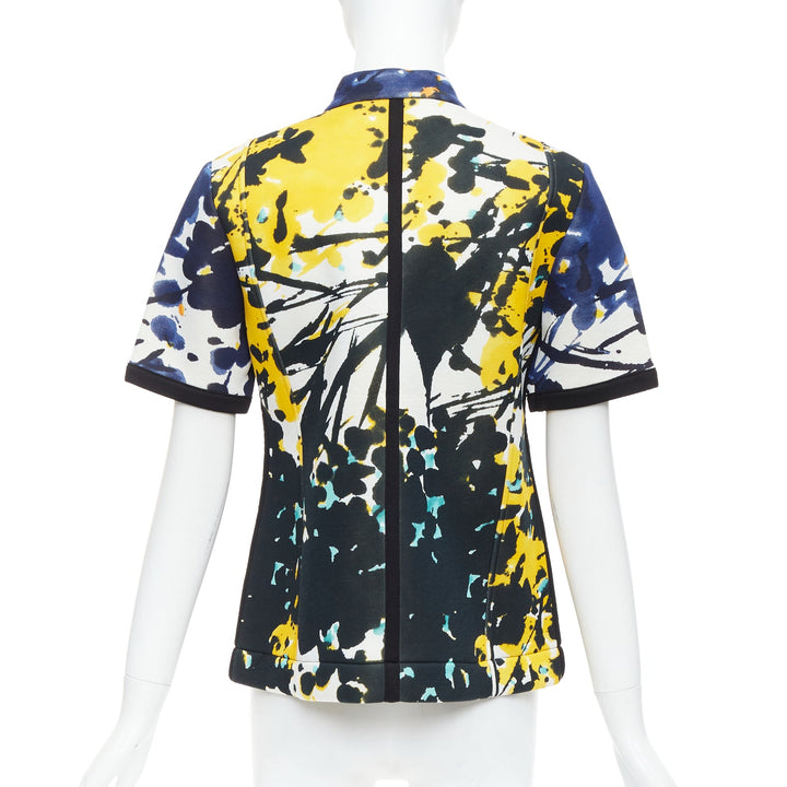 MARNI multicolor paint print scuba leather zip short sleeve coat IT42 M