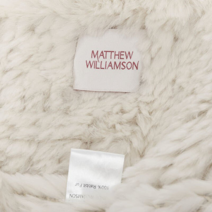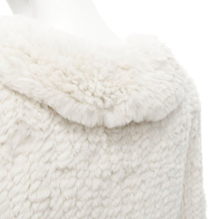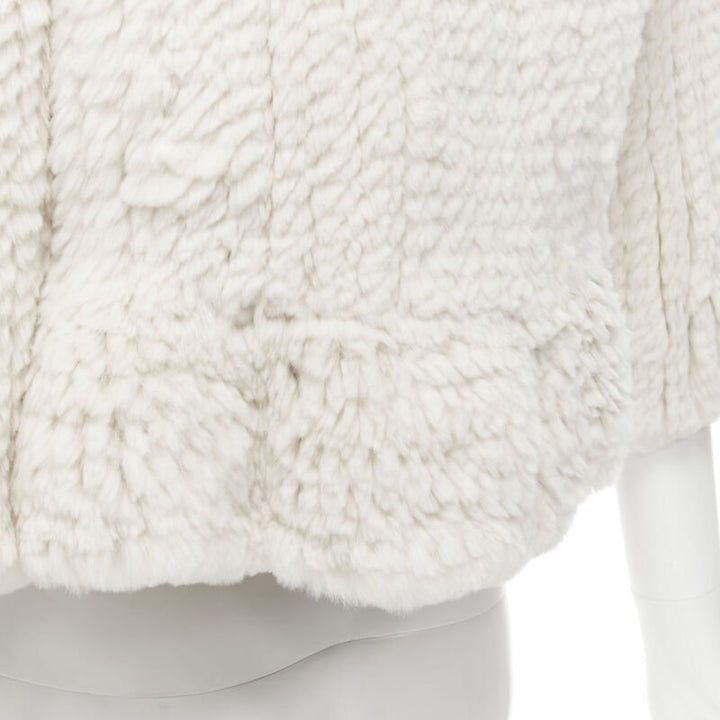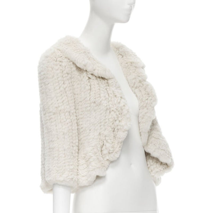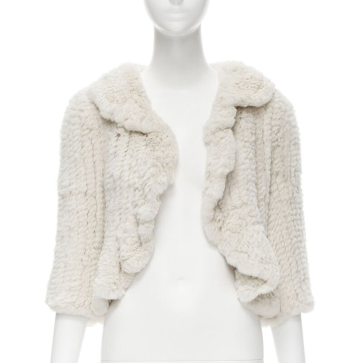 MATTHEW WILLIAMSON beige rabbit fur ruffle collar 3/4 sleeve short jacket UK8 XS