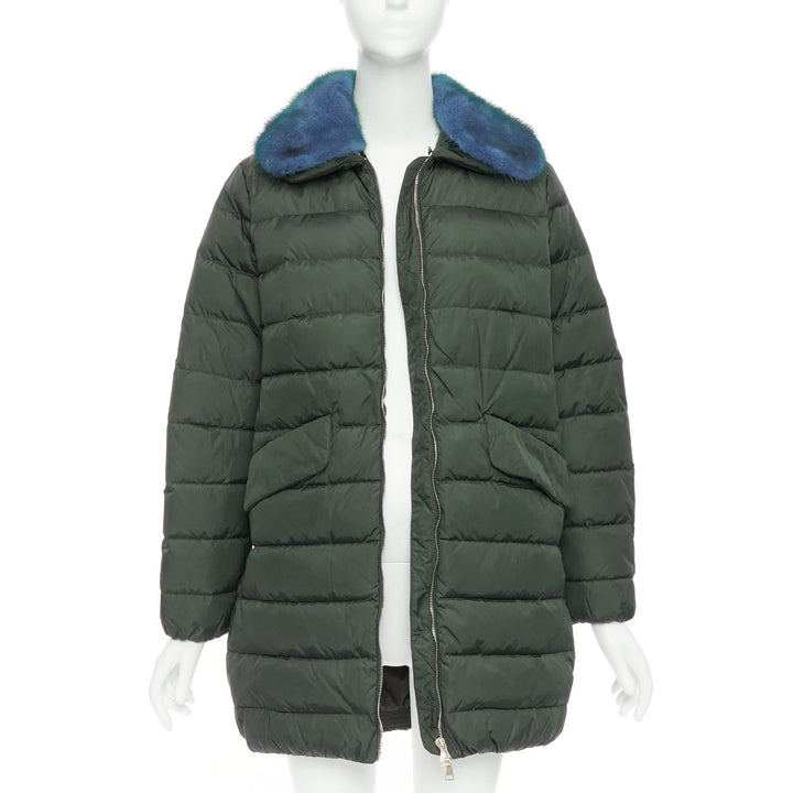 MONCLER Indis Giabotto blue fur collar khaki quilt puffer jacket Sz1