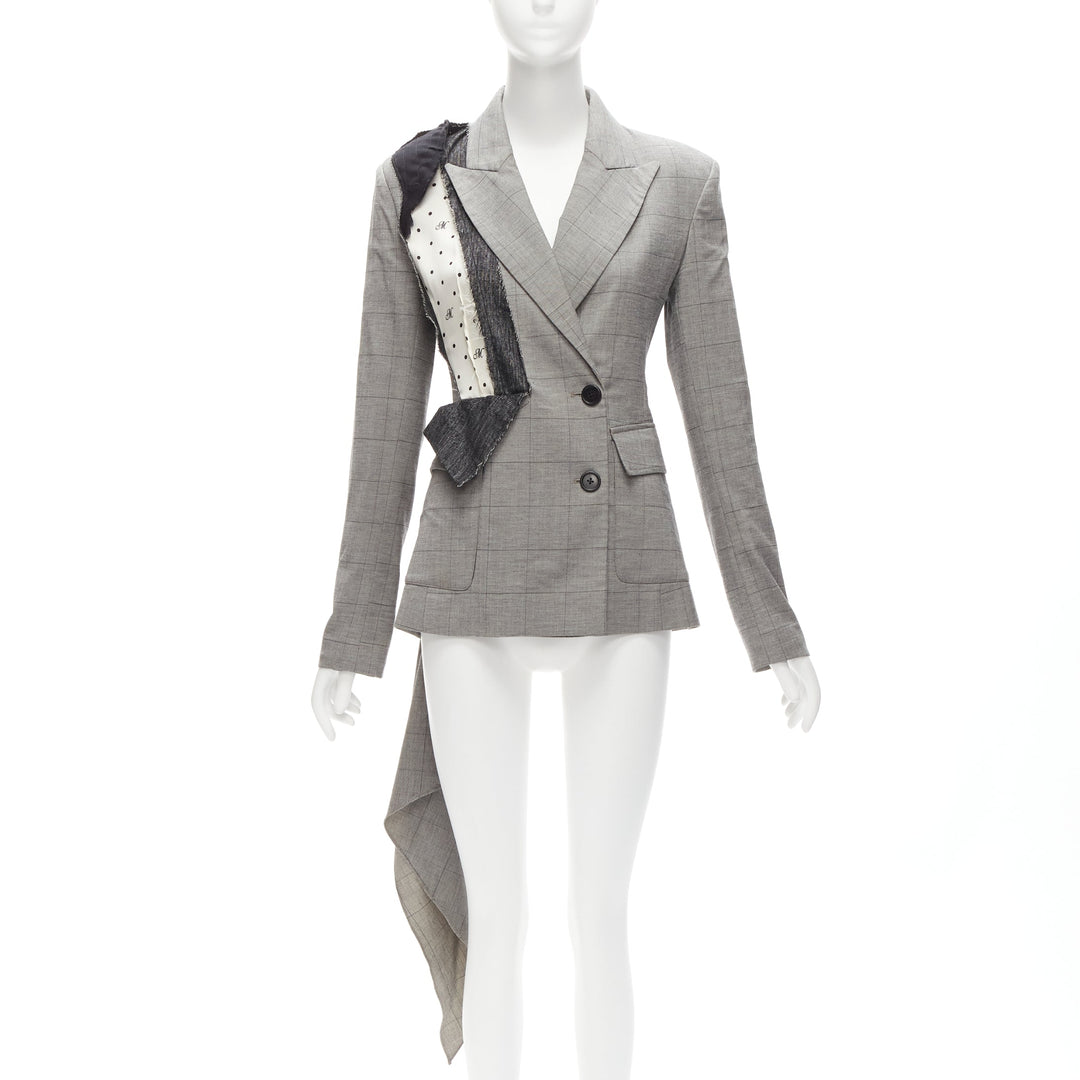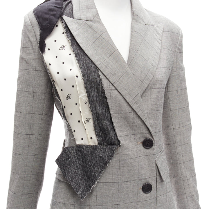 MONSE grey wool cotton deconstructed draped asymmetric blazer jacket US0 XS