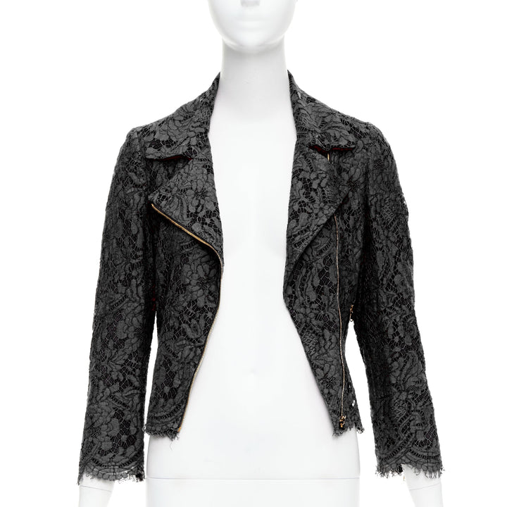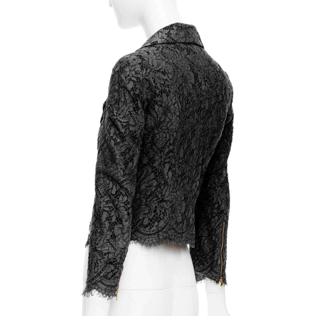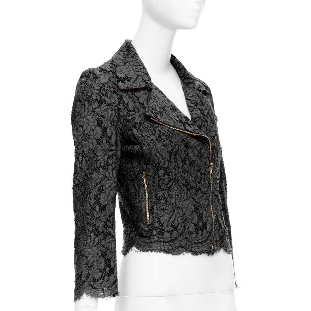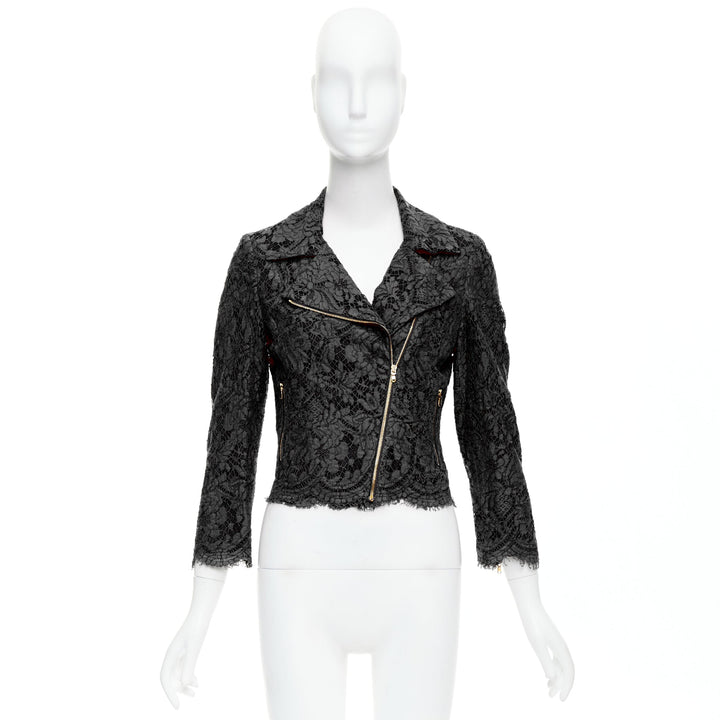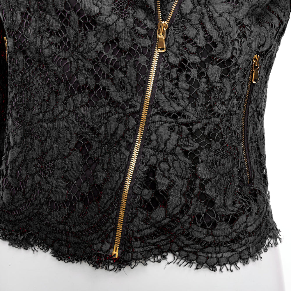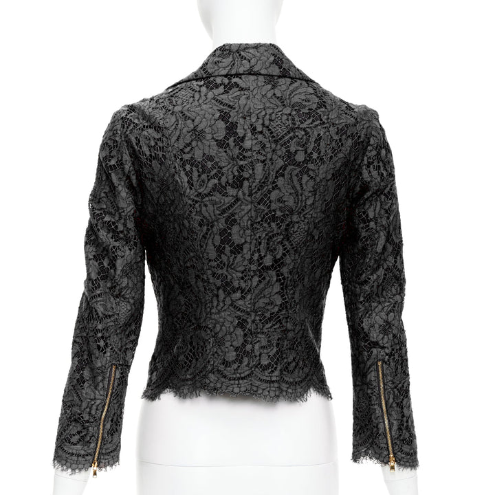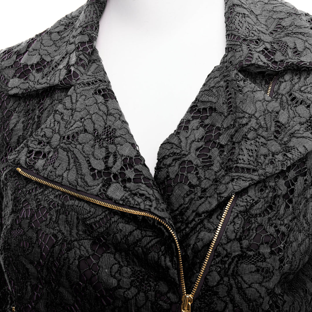 MSGM black cotton blend lace side zip cropped biker jacket IT40 S