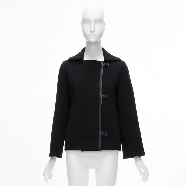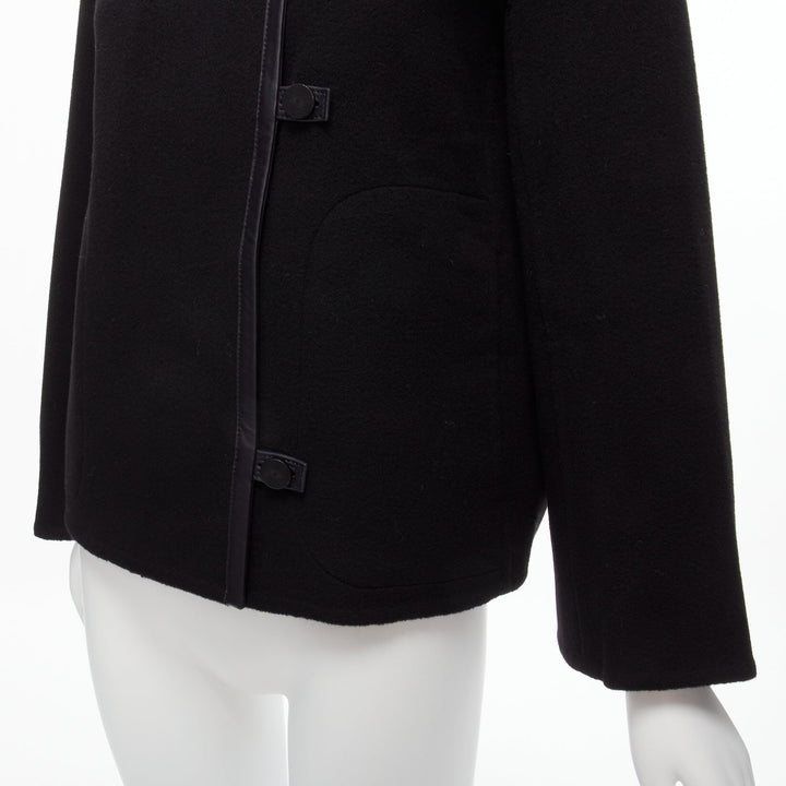 new HERMES Jean Paul Gaultier black cashmere leather trimmed H buttons jacket FR34 XS