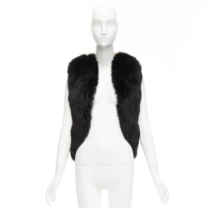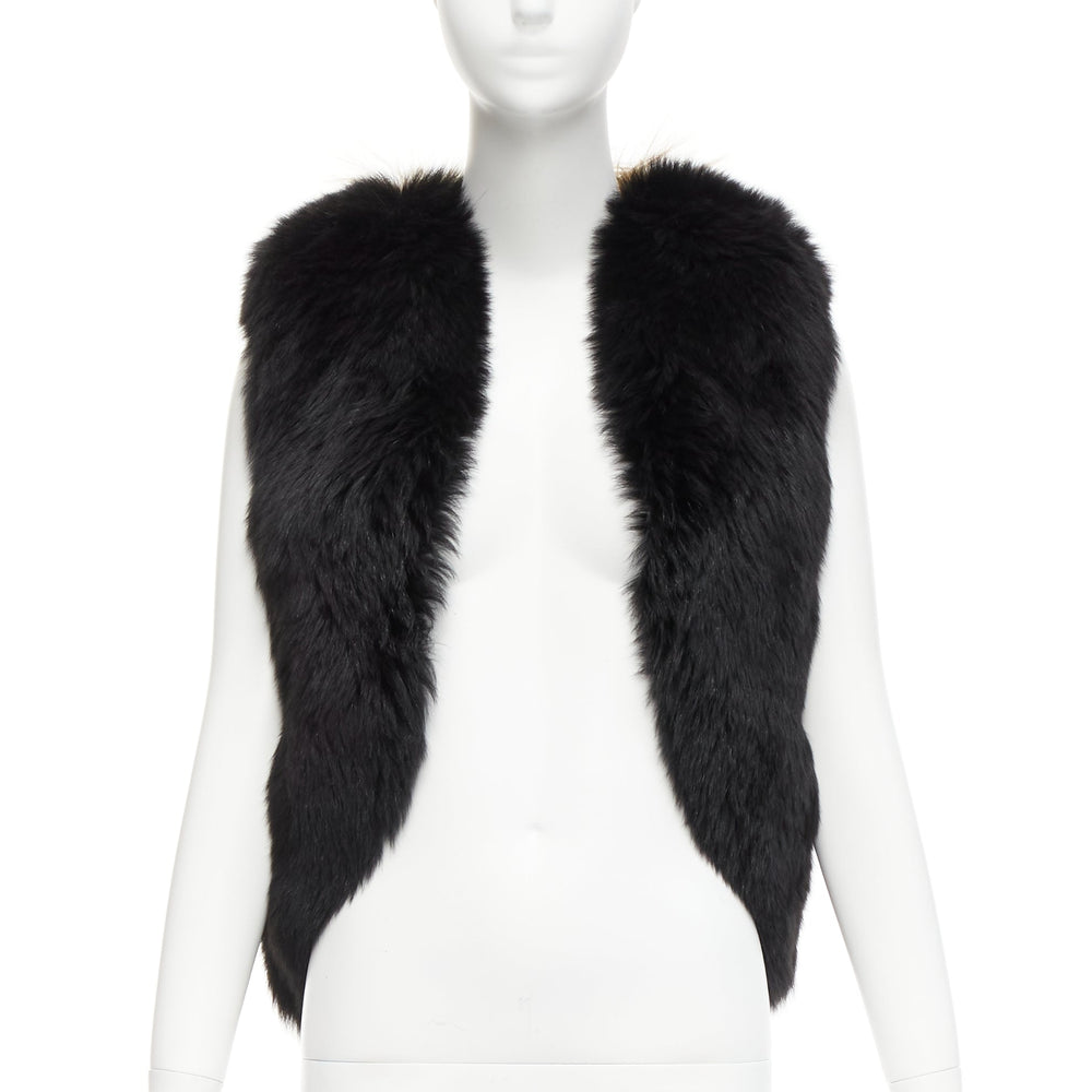 QUENTIN VERON black brown bicolor lamb fur bolero vest jacket FR36 S