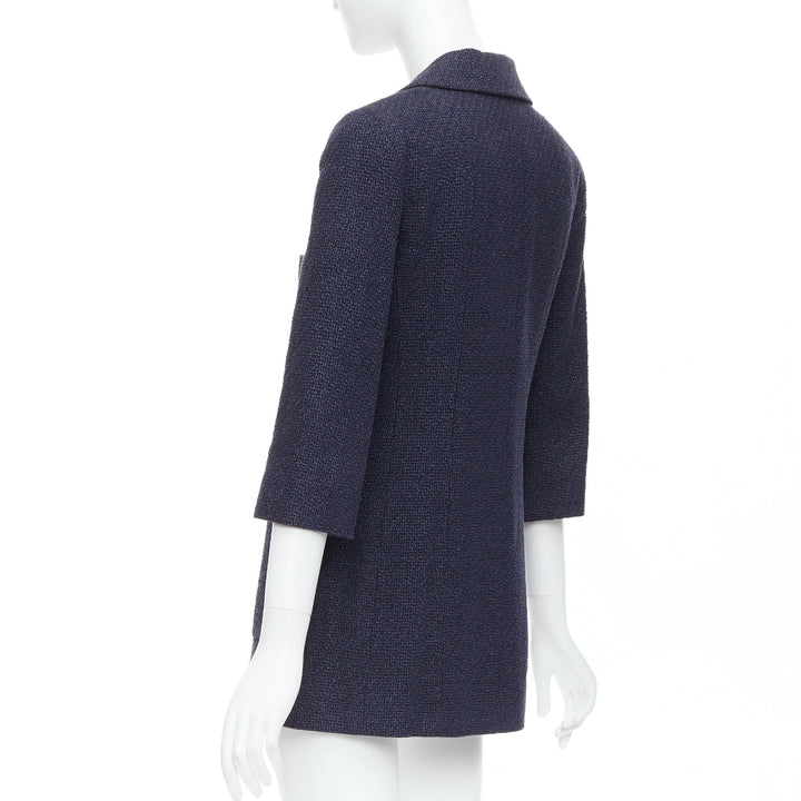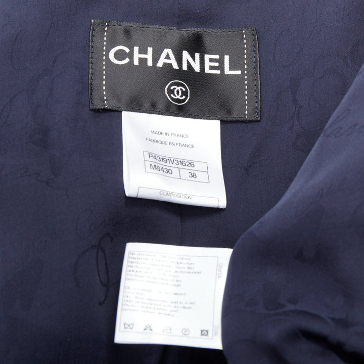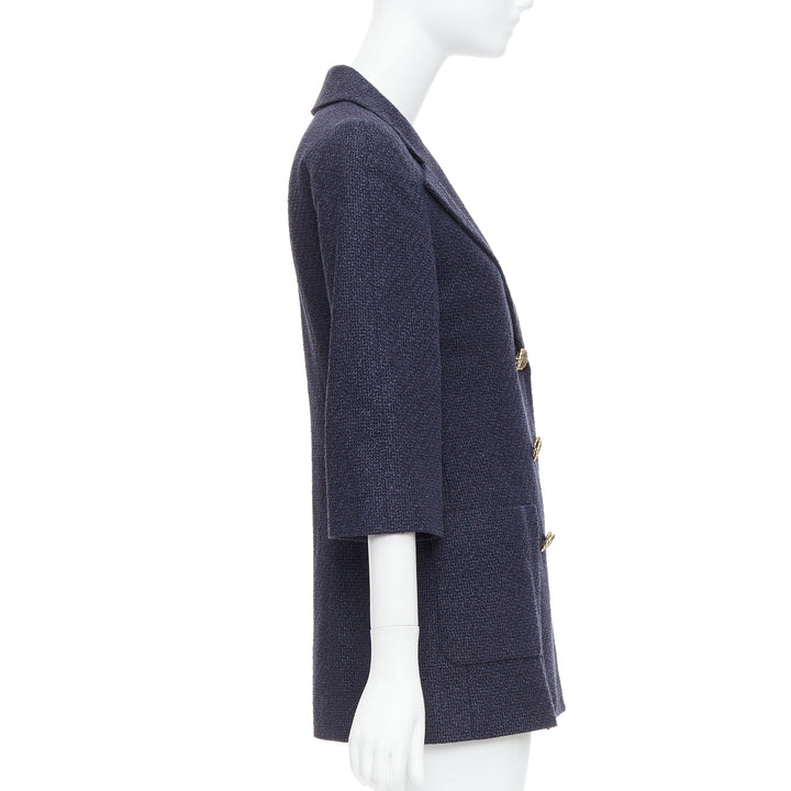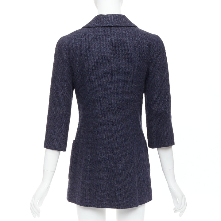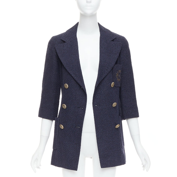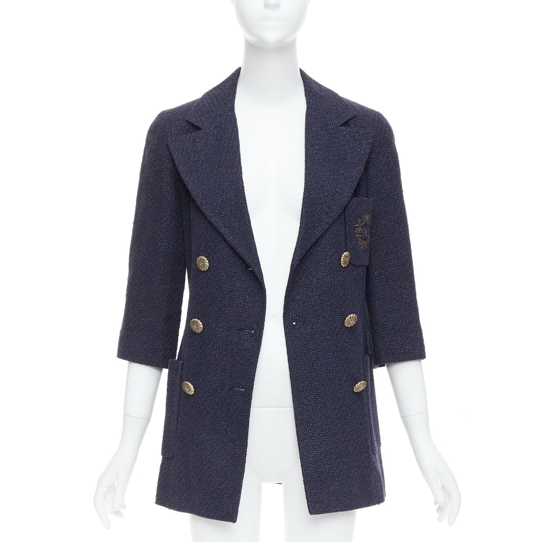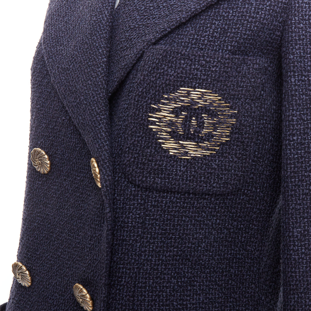 rare CHANEL 12P gold navy tweed CC pocket double breast schoolboy jacket FR38 M